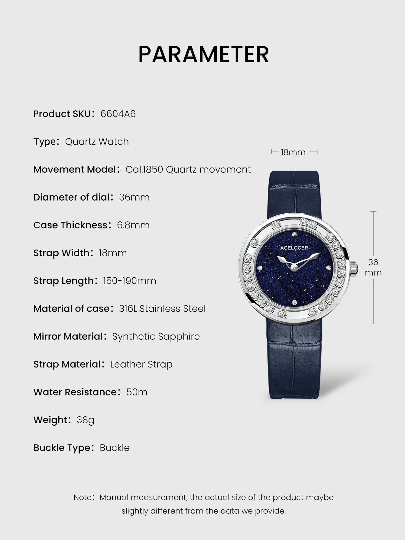 Laat u betoveren door het Agelocer Lake Baikal Happy Diamond horloge, een eerbetoon aan het Baikalmeer, de parel van Siberië. Dit luxueuze model combineert elegantie en originaliteit met de bewegende diamanten die vrij rond de wijzerplaat dansen en het licht vanuit elke hoek vangen. De diepblauwe wijzerplaat doet denken aan het zuivere water van het Baikalmeer, terwijl de roestvrijstalen kast zorgt voor robuustheid en duurzaamheid. Uitgerust met een nauwkeurig quartz-uurwerk belichaamt dit horloge zowel verfijning als innovatie. Voor liefhebbers van horlogemakerij en natuur is het de perfecte mix van verfijning en puurheid.