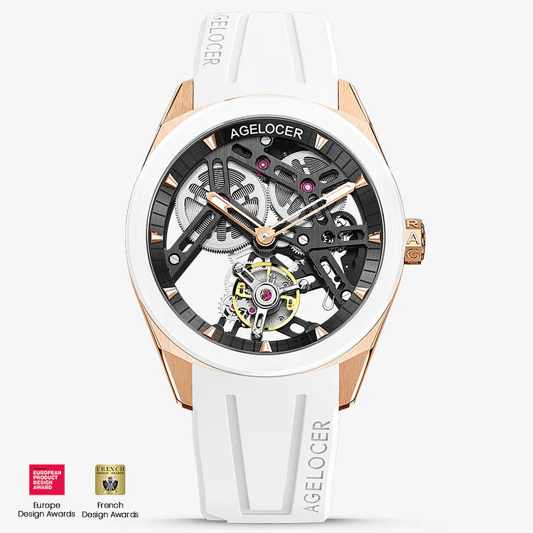 De AGELOCER tourbillon maakt gebruik van geavanceerde dubbele veerverbindingstechnologie voor een verbluffende gangreserve van 80 uur! Het ontwerp met dubbele veerton zorgt voor een gelijkmatigere en stabielere energieafgifte van de veer, wat de nauwkeurigheid van het horloge verbetert. Deze technologie is beschermd door het Chinese gebruiksmodelpatent en het Chinese uitvindingspatent.