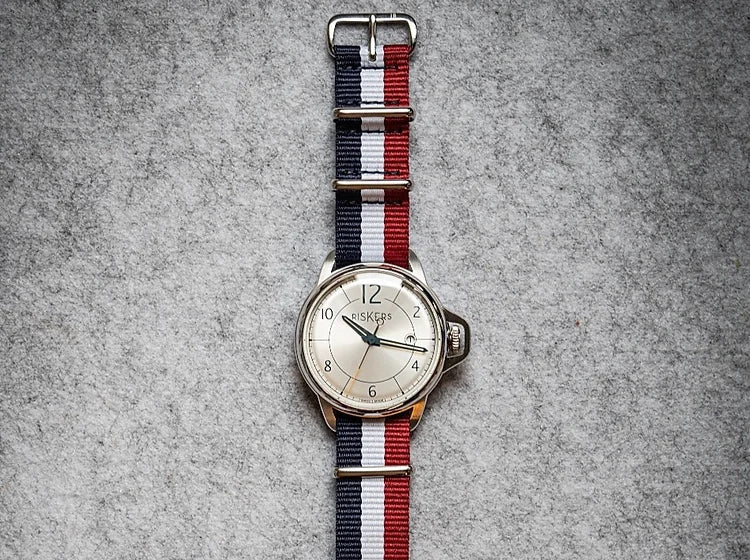 Deze blauw-wit-rode NATO-band is een eerbetoon aan de geschiedenis van Parijs en de Franse vlag. Met het monarchale wit en het rood-wit dat de stad Parijs symboliseert, schittert het nationale embleem van de Vijfde Republiek om uw pols tijdens al uw festiviteiten.