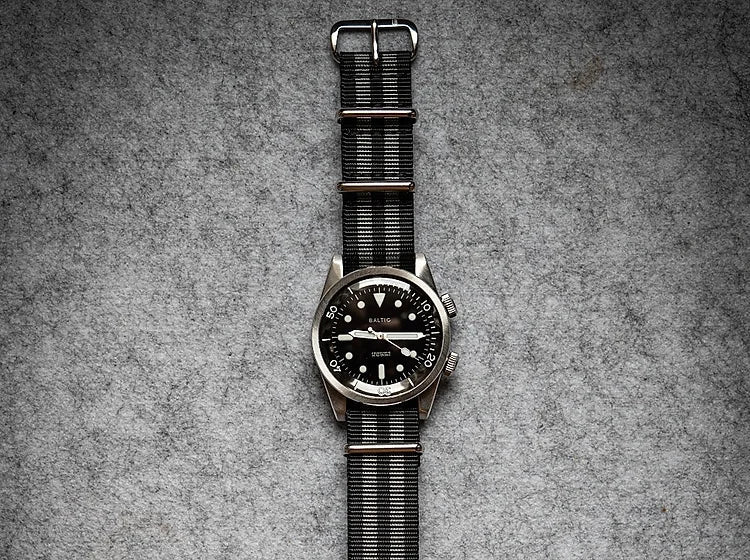 Oorspronkelijk ontworpen voor de strijdkrachten, werd de NATO-band, of in het Engels NATO-band, in 1973 ontwikkeld naar aanleiding van een dringend verzoek van het Britse Ministerie van Defensie om een band die zowel robuust als waterdicht was. Omdat de banden uit die tijd meestal van leer waren gemaakt, werden hun beperkingen al snel duidelijk vanwege de natuurlijke gevoeligheid van leer voor water. De NATO-band werd dé onmisbare, veelzijdige en tijdloze band.