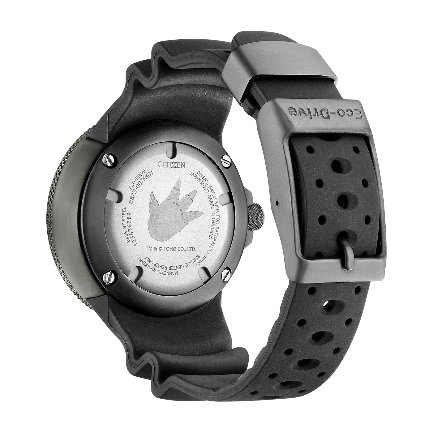 Het wereldberoemde Japanse monster Godzilla viert in 2024 zijn 70e verjaardag. Om dit te vieren, lanceert CITIZEN een nieuw, gelimiteerd Godzilla-samenwerkingsmodel. Dit nieuwe horloge is gebaseerd op de Professional Diver 300m, een populair duikhorloge uit de al lang verkochte PROMASTER-lijn. Dit robuuste duikhorloge is waterbestendig tot 300 meter en heeft een iconisch, robuust ontwerp. Deze robuuste uitstraling heeft het horloge de bijnaam "Ecozilla" opgeleverd van fans, een combinatie van Eco-Drive en Godzilla. De wijzerplaat, kast en lunette zijn voorzien van een camouflagepatroon geïnspireerd op Godzilla's geschubde huid, en in dit patroon zitten kleine Godzilla's verborgen. De band is gemaakt van milieuvriendelijk polyurethaan, dat materialen bevat die afkomstig zijn van biomassa. Er zijn twee wijzerplaatvarianten: een zwarte wijzerplaat met de klassieke zwart-witte afbeelding van Godzilla en een donkerrode wijzerplaat met de woedende Godzilla. Op het ontwerp van de achterkant van de kast staat de voetafdruk van Godzilla afgebeeld, een uniek kenmerk van dit model in beperkte oplage.