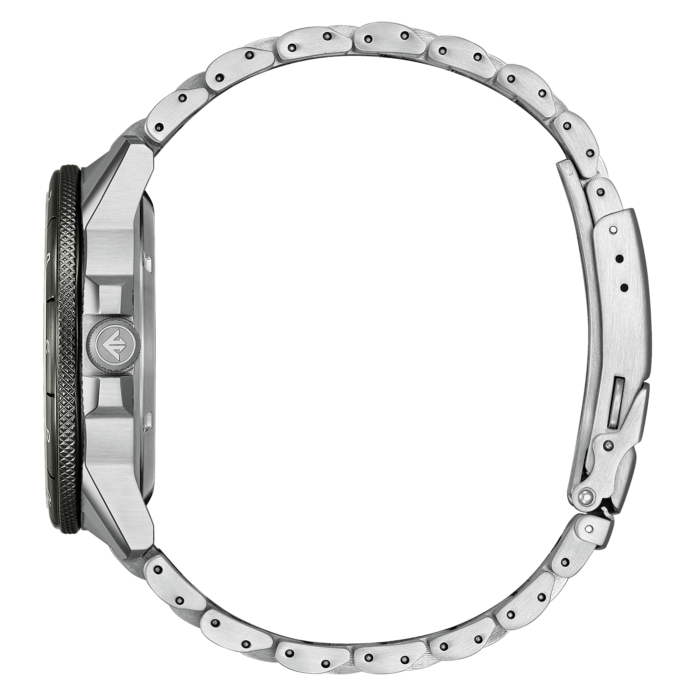 Met zijn gedurfde, vlakke oppervlakken straalt de kast een sterke persoonlijkheid uit. De schroefkroon garandeert uitstekende waterbestendigheid. Verbeterde magnetische weerstand elimineert de negatieve invloed van digitale apparaten op de nauwkeurigheid op een afstand van meer dan 1 centimeter. Zeg hallo tegen robuustheid en vertrouwen in een krachtige behuizing.