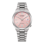 Dit nieuwe TSUYOSA-model is de gemoderniseerde versie met een grotere kast (40 mm), lichtgevende wijzers en indexen. Het kaliber 8210 zorgt voor nauwkeurige tijdwaarneming, terwijl het krasbestendige saffierglas. De geschroefde glazen achterkant garandeert een veilige bediening. Details zoals de afgeschuinde, fijn geborstelde en gepolijste kast en band, de gladde en golvende schakels, die zorgen voor een hoog draagcomfort, en het saffierglas tillen het horloge naar een hoger niveau. De nieuwe collectie is verkrijgbaar in verschillende wijzerplaatkleuren.