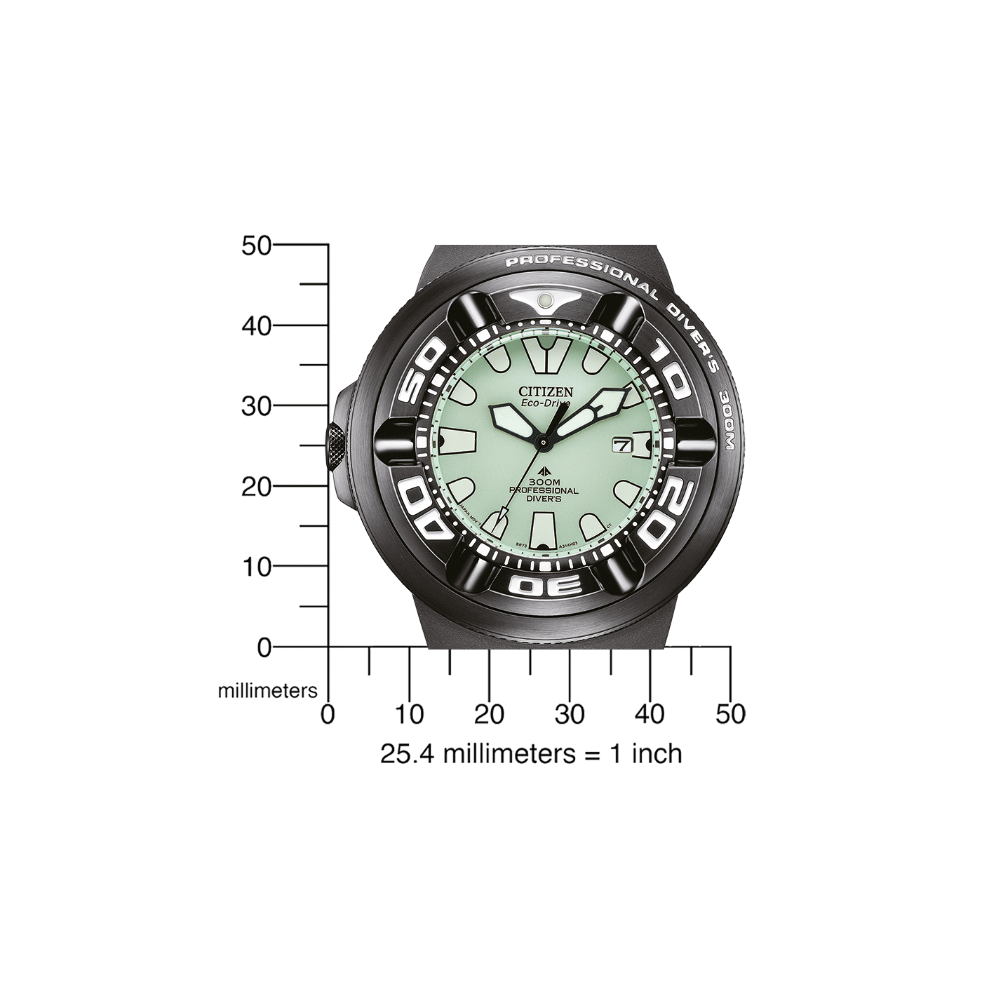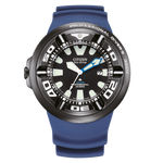 La Citizen Promaster BJ8055-04E , BJ8055-04X (aussi appelée « Ecozilla ») est une montre de plongée professionnelle certifiée ISO, conçue pour résister aux conditions les plus extrêmes sous l’eau. Animée par le mouvement solaire Eco-Drive calibre B873, elle offre une autonomie jusqu’à 6 mois une fois pleine charge. Son boîtier robuste de 48,2 mm, sa couronne vissée, son fond vissé et sa lunette unidirectionnelle garantissent une résistance maximale jusqu’à 30 bar (300 m). Sa construction antimagétique, son verre « crystal glass » et sa sangle en caoutchouc bleue avec extension néoprène complètent l’ensemble.