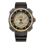 La BN0226-10P se distingue par son cadran doré pale, boîtier en Super Titanium™ avec traitement Duratect MRK + DLC, lunette dorée sablée et bracelet caoutchouc noir. (Spécifications Citizen)