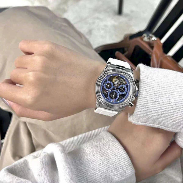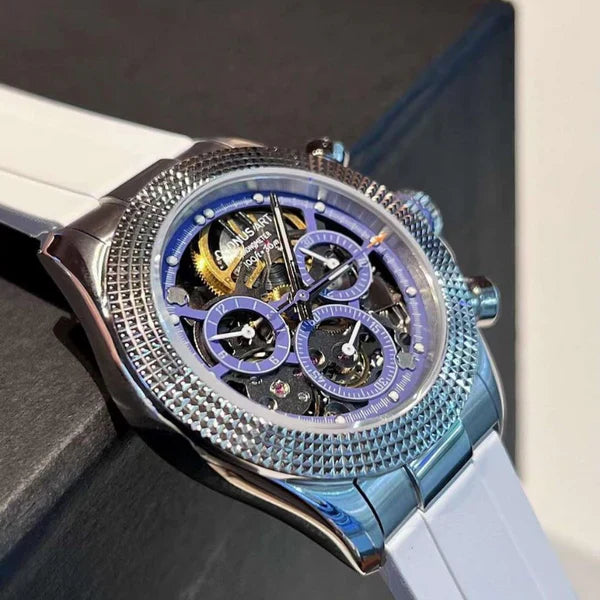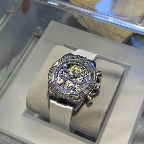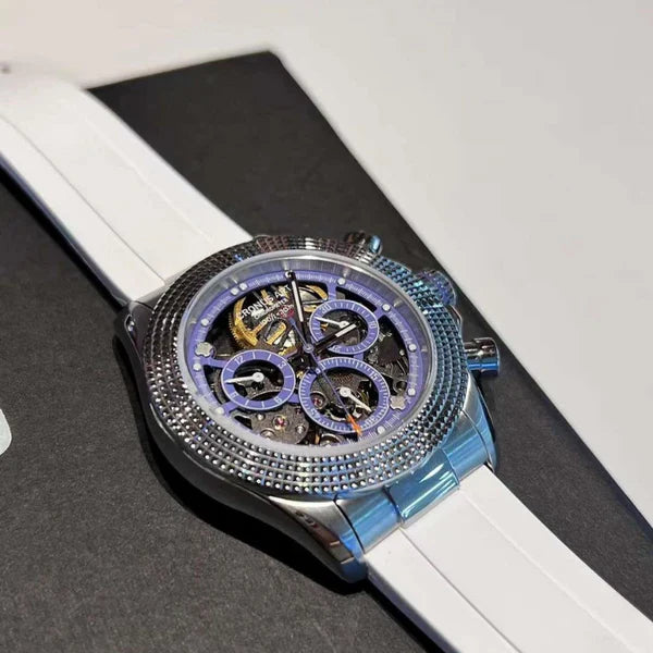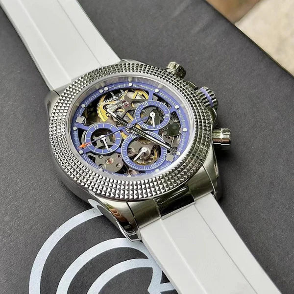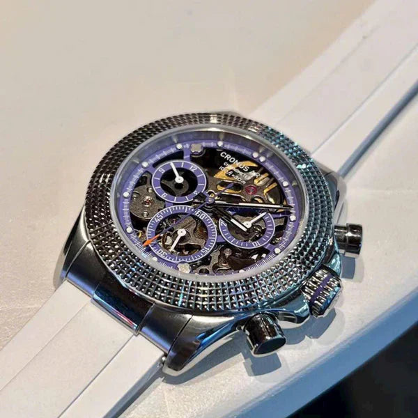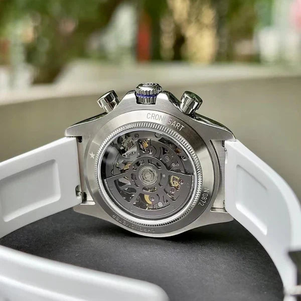 De CRONUS ART CM015-001 valt op in de Daytona-serie door de innovatieve combinatie van klassiek Rolex Daytona-design en moderne, wereldwijde invloeden. Met zijn geavanceerde kilometerteller is dit horloge niet alleen geschikt voor tijdmeting, maar ook een onmisbaar hulpmiddel voor sport- en raceliefhebbers, met snelheden tot 400 eenheden per uur.