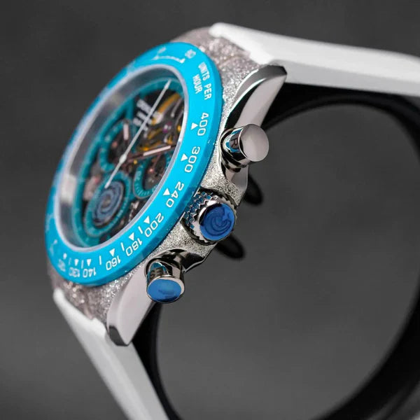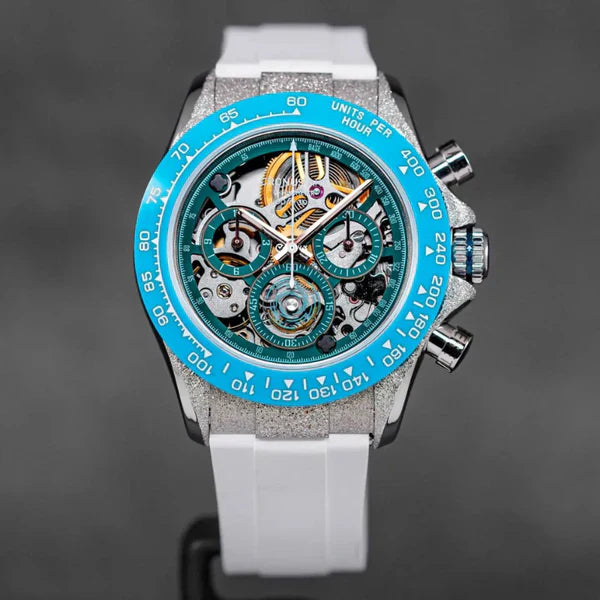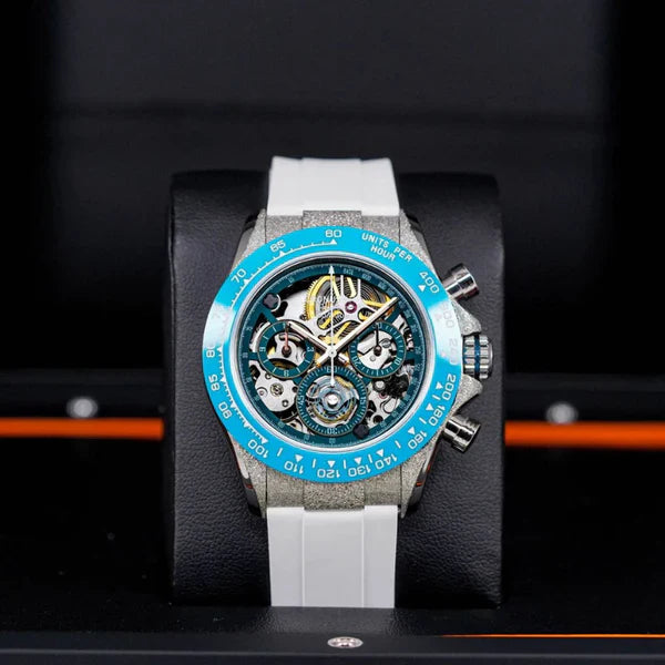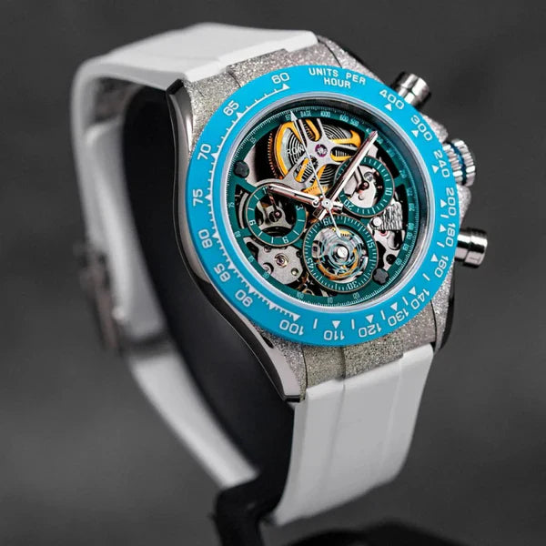 De CRONUS ART CM015-008 zet de traditie van innovatie van de Daytona-serie voort, met een indrukwekkende combinatie van het klassieke Rolex Daytona-ontwerp en moderne, wereldwijde invloeden. Dit model is uitgerust met de geavanceerde kilometerteller, waarmee snelheden tot 400 eenheden per uur kunnen worden gemeten; een perfect hulpmiddel voor sport- en raceliefhebbers.