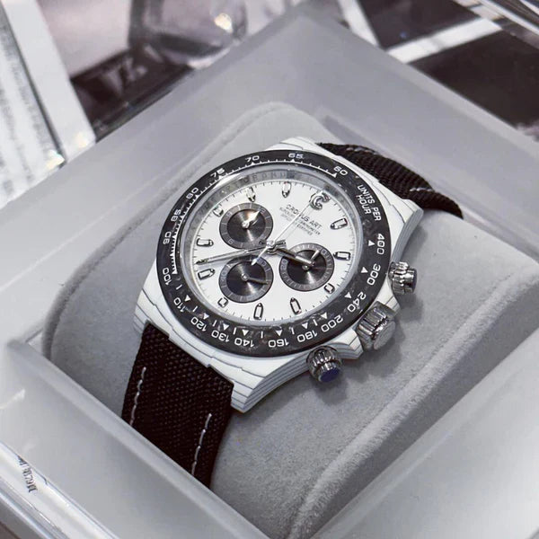 Herontdek de uitmuntendheid van horlogemaken met de CRONUS ART DAYTONA , een limited edition model dat innovatie, prestaties en tijdloze elegantie combineert. Dit horloge, gemaakt in Zwitserland, combineert eigentijds design met geavanceerde materialen voor een uitzonderlijke ervaring.