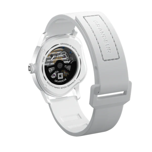 De Grandeur Strange Collectie biedt een perfecte harmonie tussen innovatieve materialen en verfijnd vakmanschap. Deze exclusieve collectie, gelimiteerd tot 100 stuks per kleur , biedt horloges die elegantie en verfijning opnieuw definiëren.
