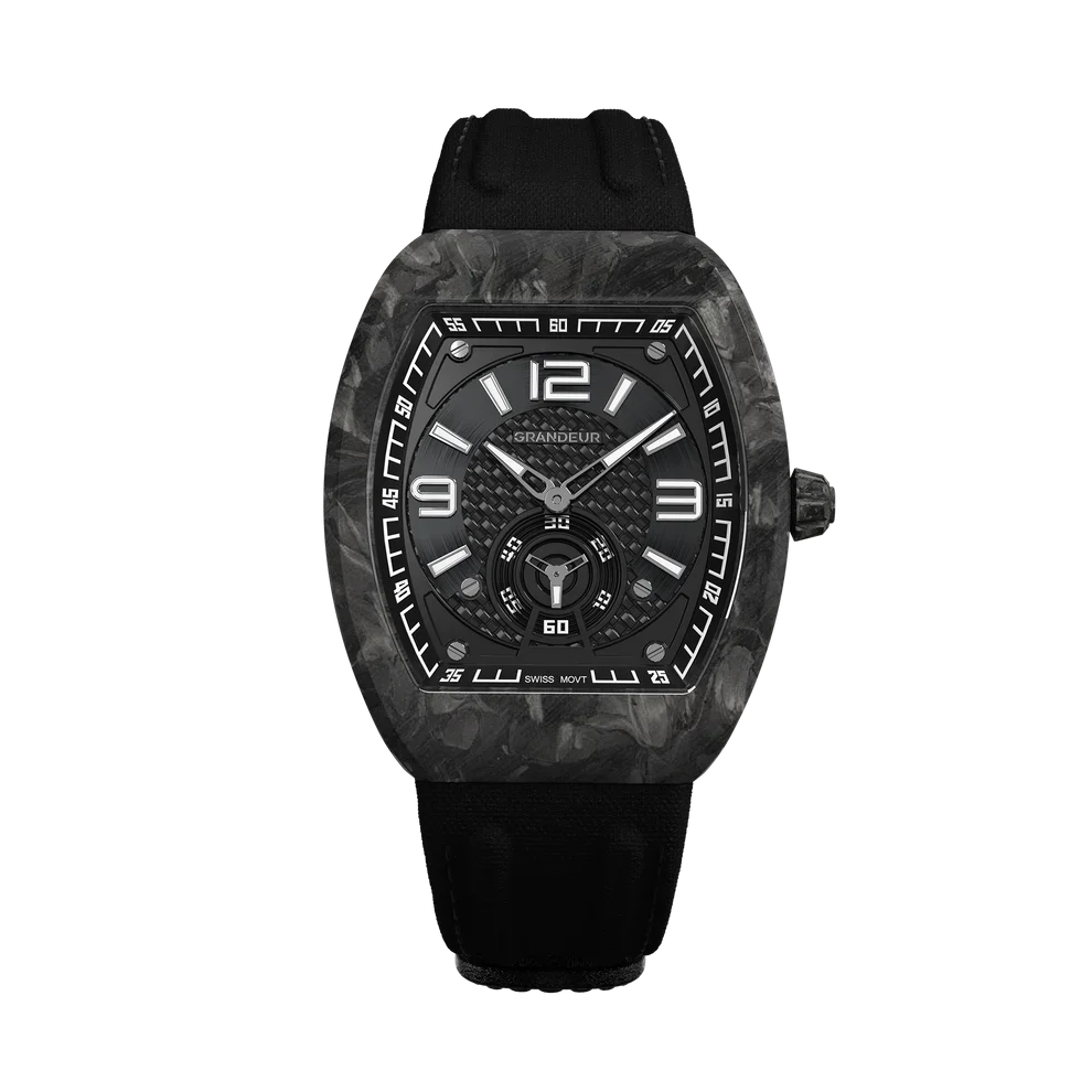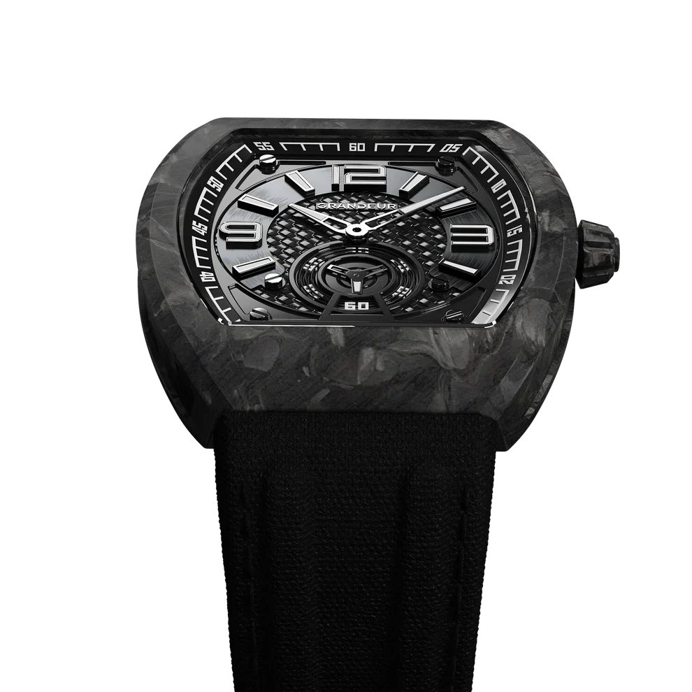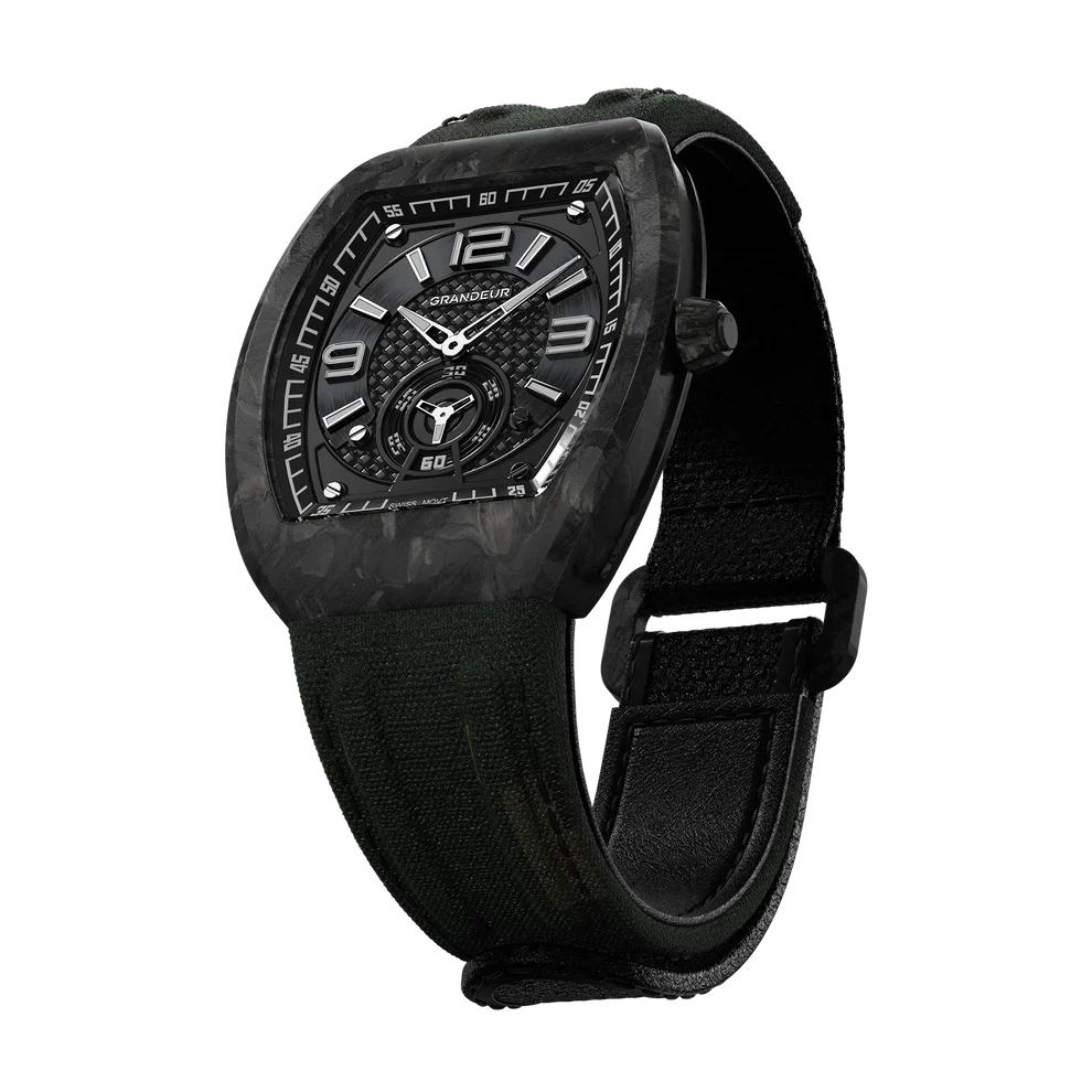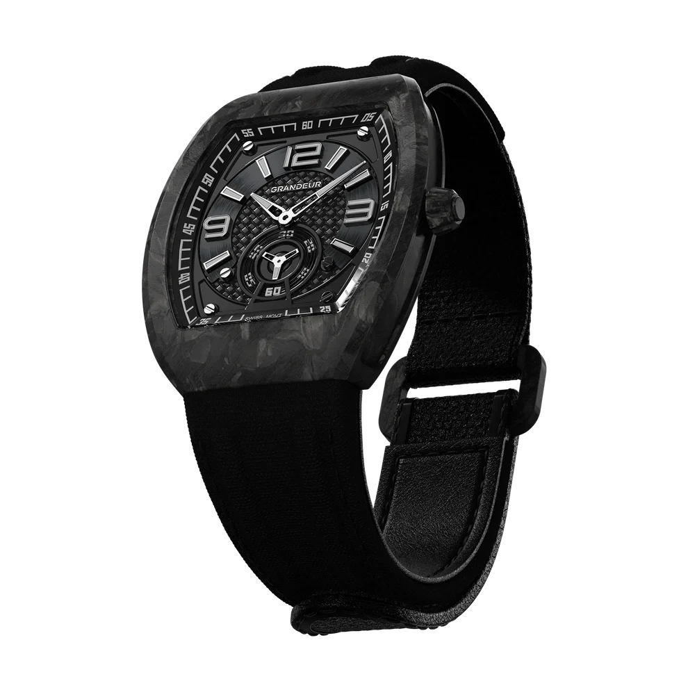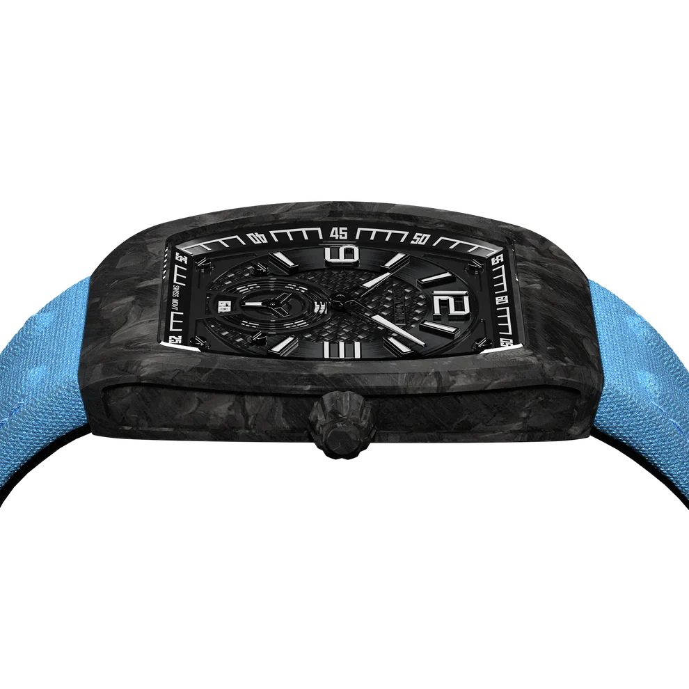 De TorQ Carbon Edition combineert ultramoderne materialen met Zwitserse precisie, met een gesmede koolstofvezelkast geaccentueerd met discrete zwarte elementen. Met een dikte van slechts 6,4 mm wordt hij aangedreven door het Zwitserse Ronda Slimtech 1014-uurwerk, dat avant-gardistische esthetiek combineert met compromisloze prestaties.