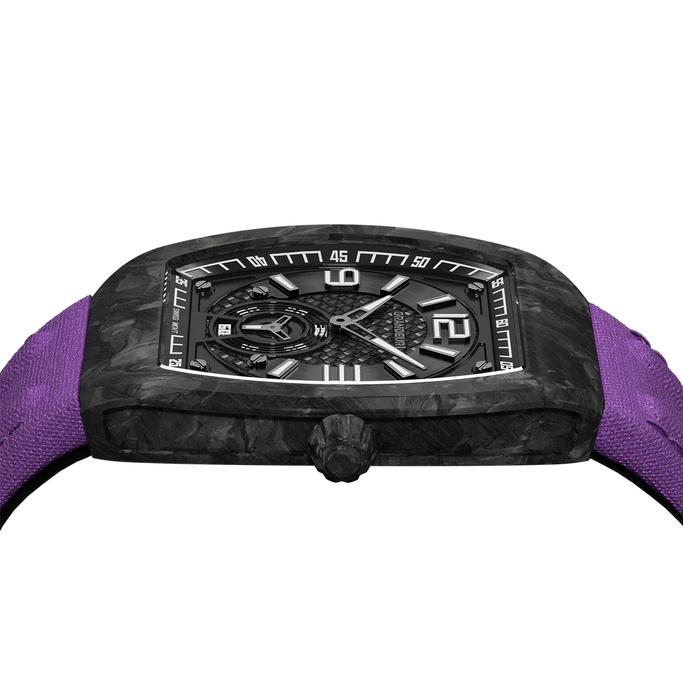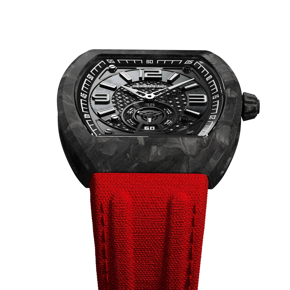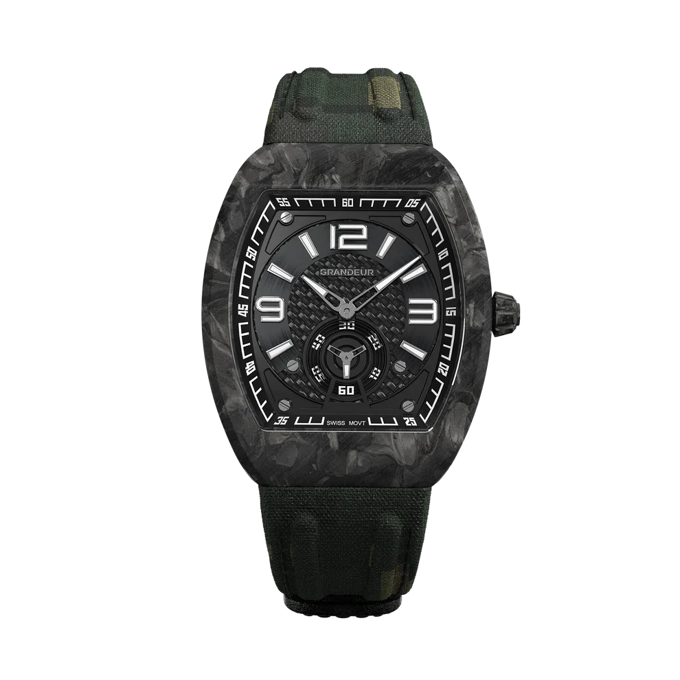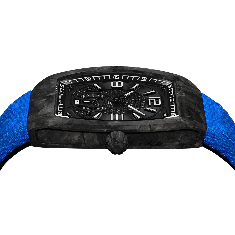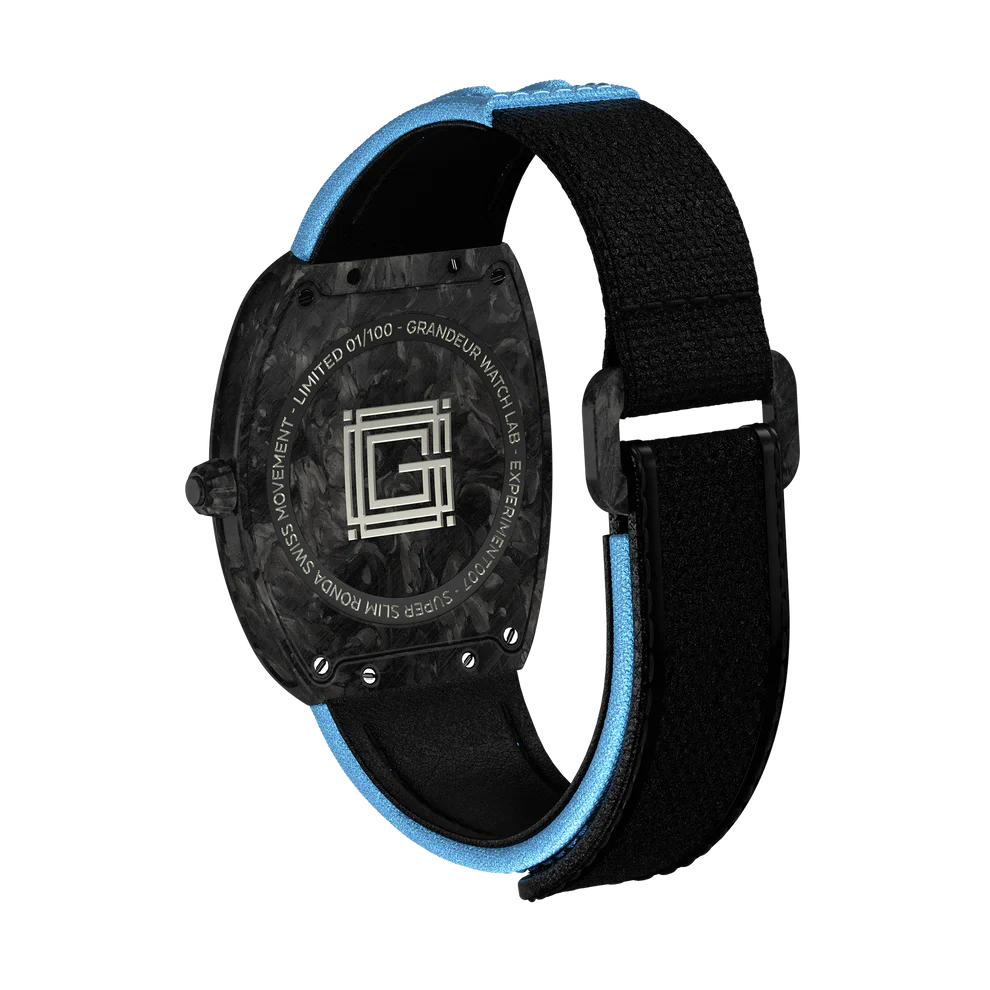 De TorQ Carbon Edition combineert ultramoderne materialen met Zwitserse precisie, met een gesmede koolstofvezelkast geaccentueerd met discrete zwarte elementen. Met een dikte van slechts 6,4 mm wordt hij aangedreven door het Zwitserse Ronda Slimtech 1014-uurwerk, dat avant-gardistische esthetiek combineert met compromisloze prestaties.
