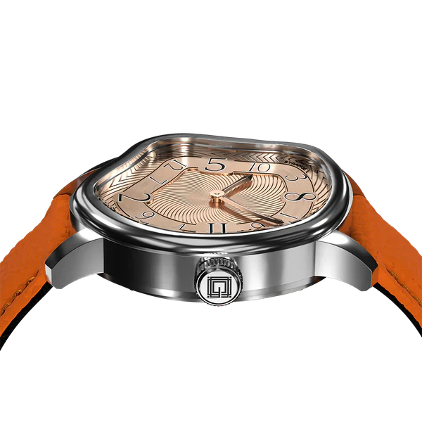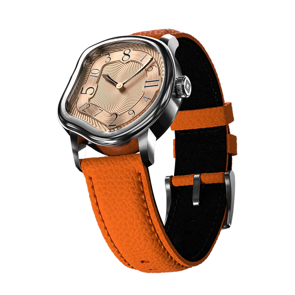 De Grandeur Strange V2-collectie belichaamt een reis van elegantie en innovatie, met fascinerende spiraalvormige guilloché wijzerplaten die een unieke energie uitstralen vanuit het midden van elk horloge. De asymmetrische kast van 34-39 mm, ontworpen voor moderne verfijning, is gemaakt van Grade 5 titanium en combineert sterkte en lichtheid in een slank profiel van 9,8 mm, voor ongeëvenaard comfort.