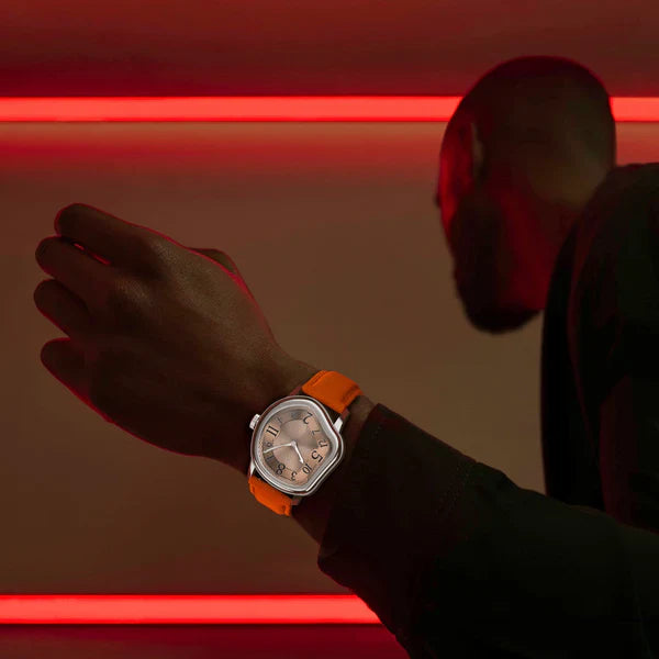 Het hart van deze collectie is de Strange Hour Complication , een uitzonderlijk, in eigen huis vervaardigd mechanisme dat de kunst van tijdwaarneming opnieuw uitvindt door mechanische precisie en artistieke schoonheid te combineren. Elke wijzerplaatkleur wordt versterkt door een 20 mm Togo leren band, die een vleugje verfijning toevoegt en zorgt voor een perfecte pasvorm bij elke gelegenheid.