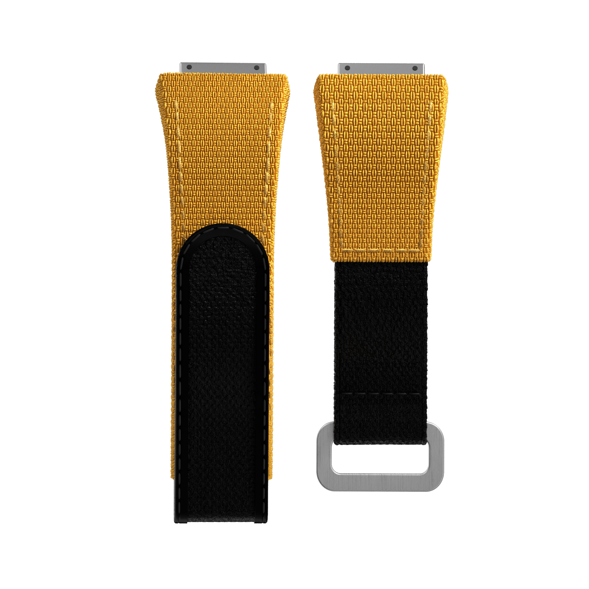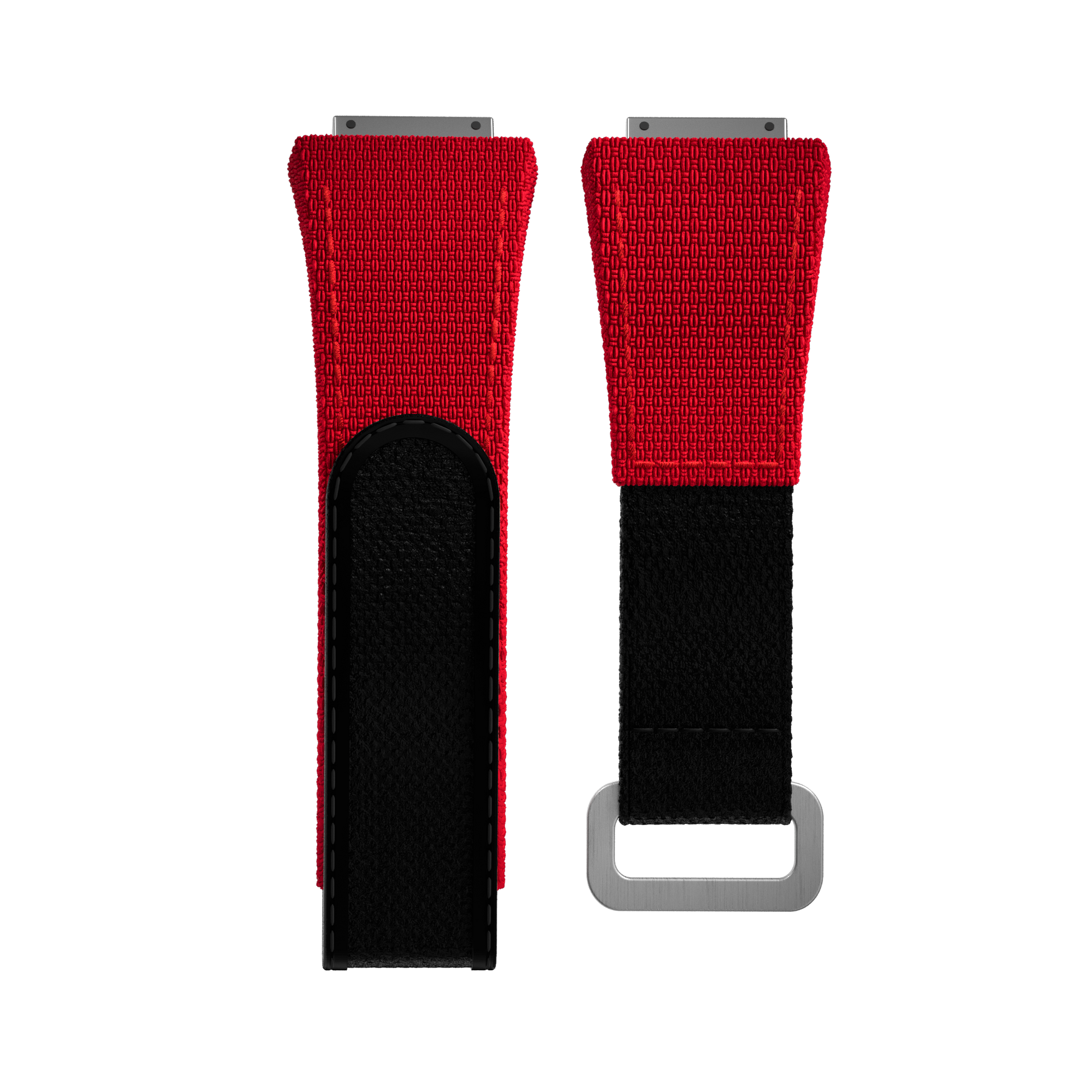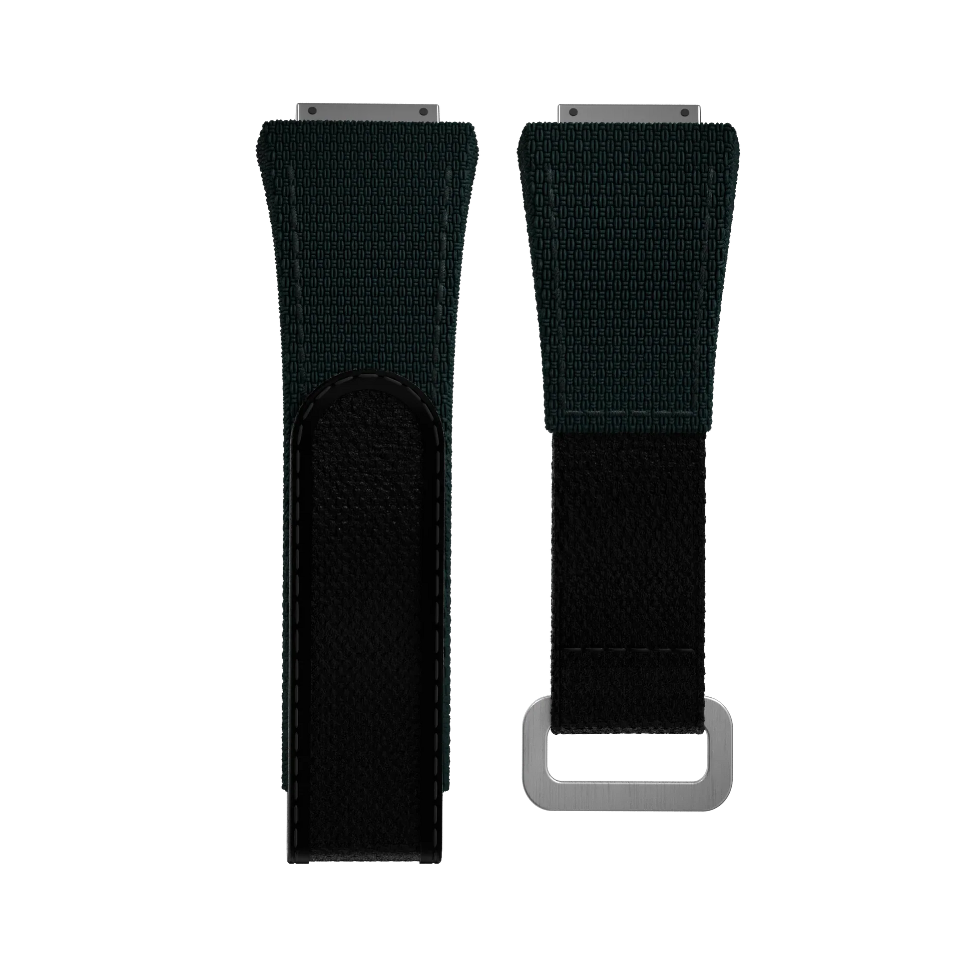 Un élément phare de notre bracelet en toile caoutchoutée, renforcé de cuir, est son système de fermeture Velcro, doté d’une boucle de retenue renforcée qui permet des ajustements rapides, sans outil, pour un maintien sûr et confortable — offrant un look sportif, épuré et discret.