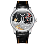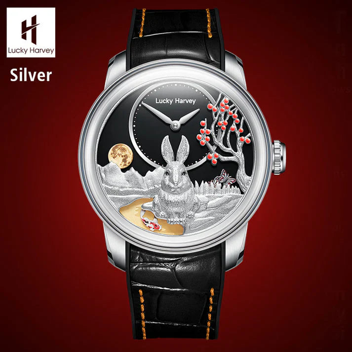 Het Rabbit Silver horloge van Lucky Harvey viert het Jaar van het Konijn met tijdloze elegantie. Deze gelimiteerde editie, geproduceerd in slechts 588 exemplaren, is een eerbetoon aan de symboliek van het konijn in China, geassocieerd met geluk en voorspoed. De fijn gedetailleerde wijzerplaat is voorzien van een zilveren konijnmotief, terwijl de robuuste roestvrijstalen kast en het automatische uurwerk betrouwbaarheid en precisie bieden. Uitgerust met een lichtgevende functie valt het horloge zelfs in het donker op en biedt het een elegante gloed. Dit zeldzame exemplaar is een must-have voor verzamelaars en liefhebbers van verfijnde horlogemakerij.