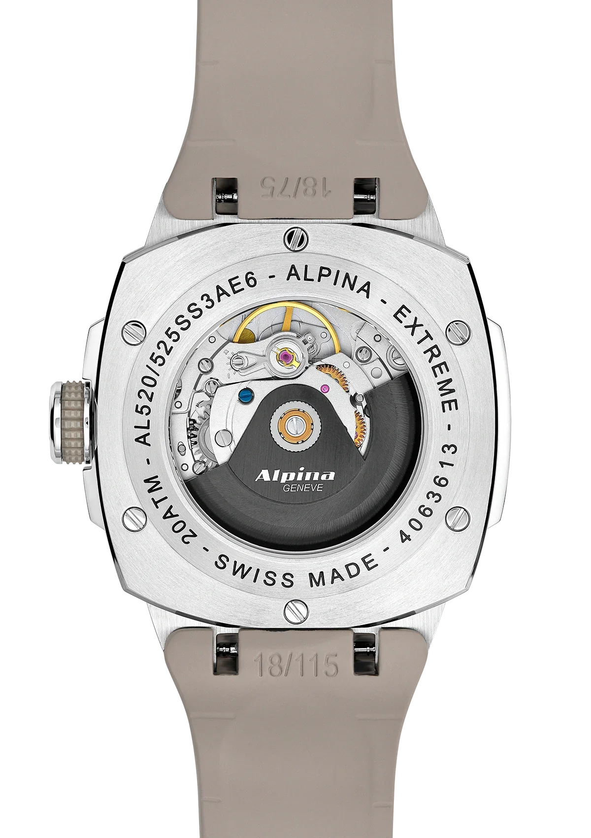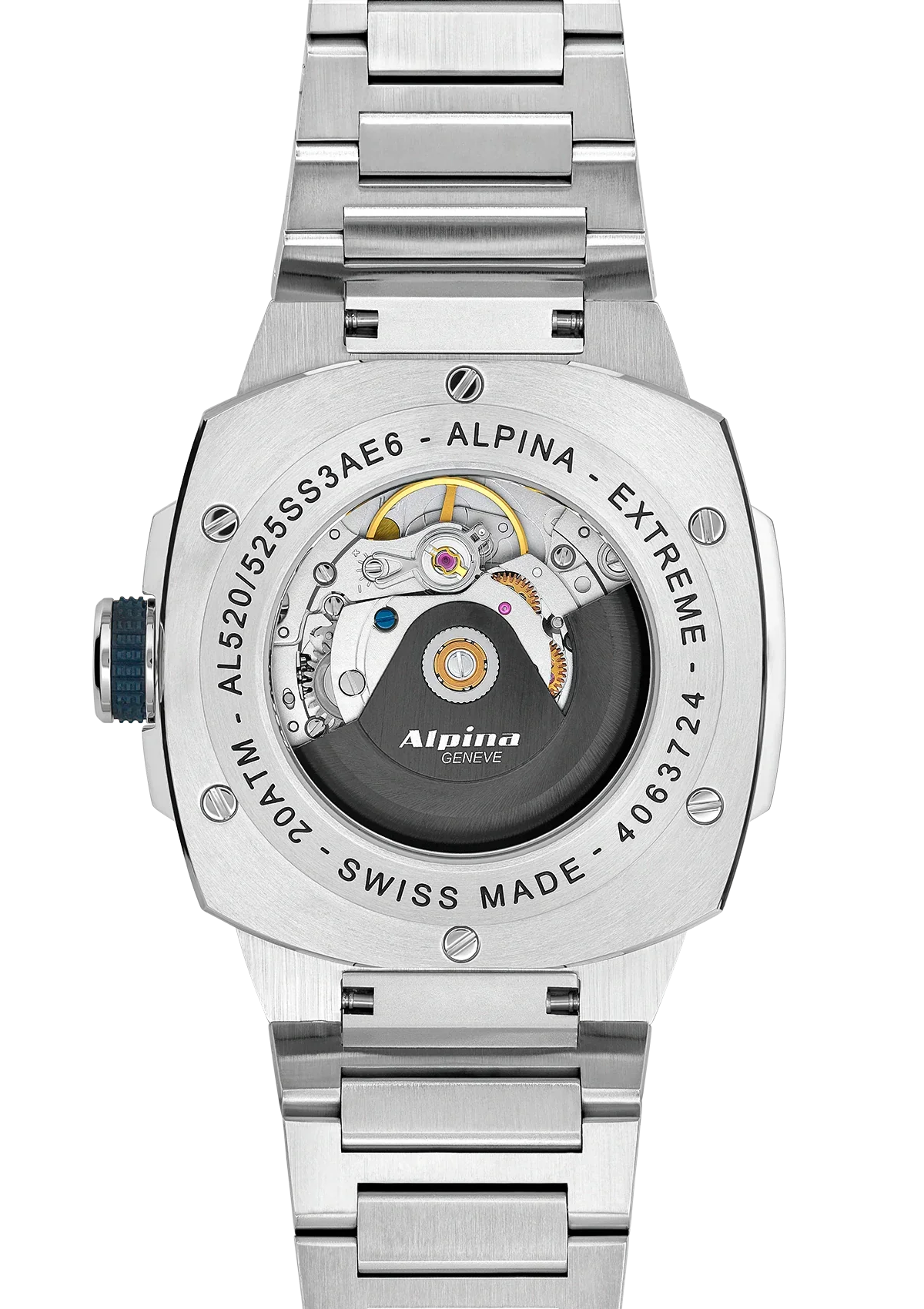 Deze Alpiner Extreme Automatic heeft een kast van 39 x 40,40 mm en een roestvrijstalen band of een rubberen band voor de nieuwste versie. Het automatische uurwerk heeft een gangreserve van 38 uur. Het horloge geeft de uren, minuten en de datum weer.