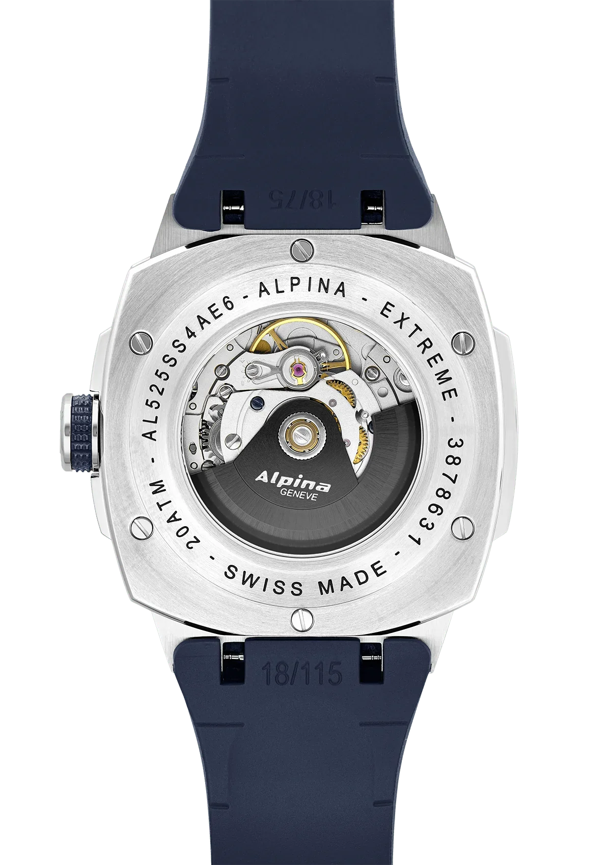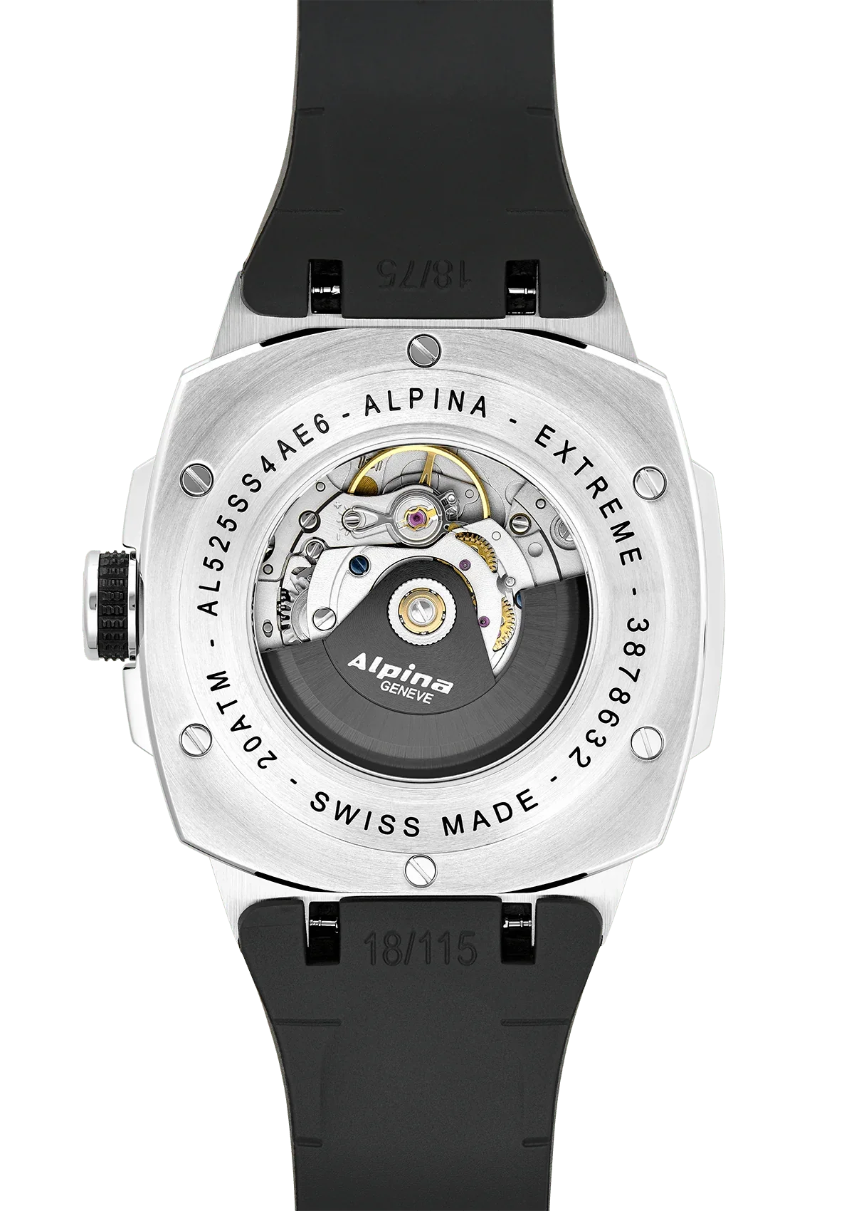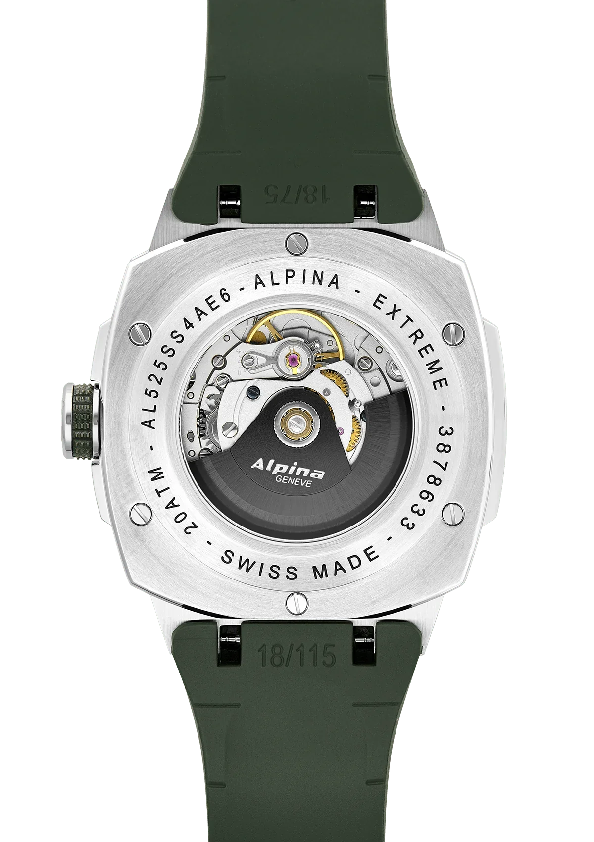 Deze Alpiner Extreme Automatic heeft een kast van 41 x 42,50 mm en een rubberen band. Het automatische uurwerk heeft een gangreserve van 38 uur. Het horloge geeft de uren, minuten, seconden en de datum weer op 3 uur.