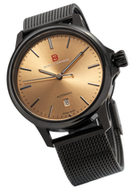 Met zijn robuuste matzwarte roestvrijstalen kast, ultrasterk saffierglas en nauwkeurige automatische uurwerk combineert de Dark Saintlo moderne esthetiek met hoogwaardige mechaniek. De ingetogen en verfijnde wijzerplaat zorgt voor optimale afleesbaarheid, versterkt door lichtgevende wijzers en indexen.