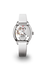 Roestvrijstalen kast, 31 mm breed, automatisch opwindbaar, skelet, "Clous de Paris"-motief op de wijzerplaat, brug en gewicht, saffierglas, waterbestendig tot 3 atm, technologische satijnen band