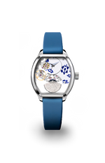 Roestvrijstalen kast, 31 mm breed, automatisch opwindbaar, skelet, wateropdruk "Petite Fleur" op de wijzerplaat en brug, rotor bezet met diamanten (0,30 ct), saffierglas, waterbestendig tot 3 atm, technologische satijnen band