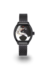 Roestvrijstalen kast met zwarte PVD-coating, 31 mm breed, automatisch opwindbaar, skelet, schaakbordpatroon op de wijzerplaat, brug en gewicht, saffierglas, waterbestendig tot 3 atm, metalen band