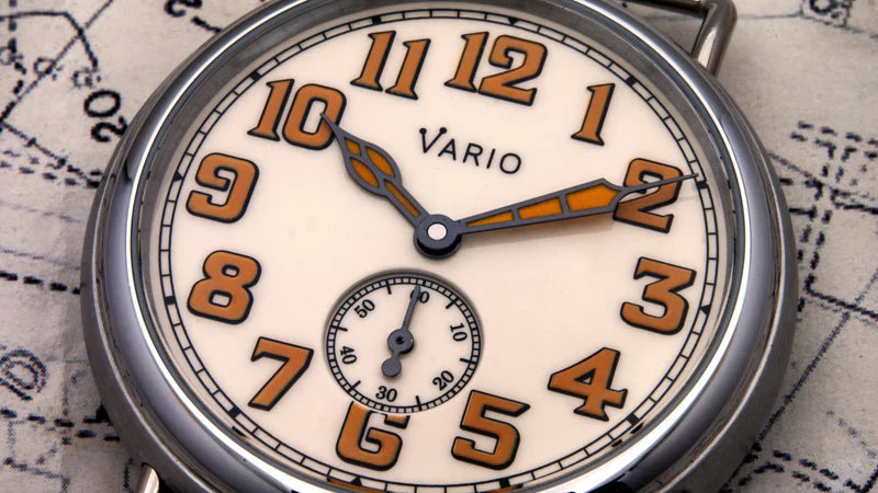 De Vario 1918 Trench is een moderne herinterpretatie van loopgravenhorloges uit de Eerste Wereldoorlog, met verbeterde functies en een eerbetoon aan de eerste herenhorloges van begin 20e eeuw.