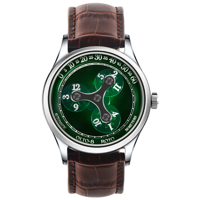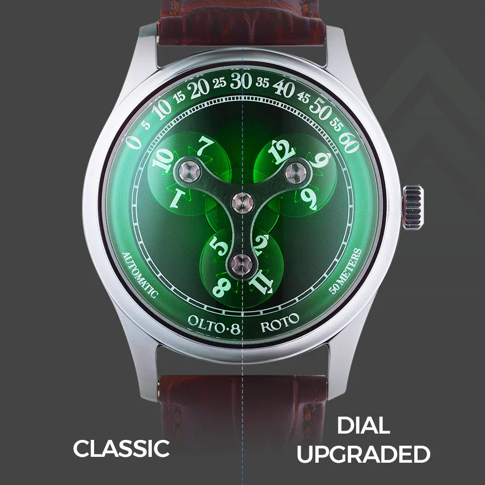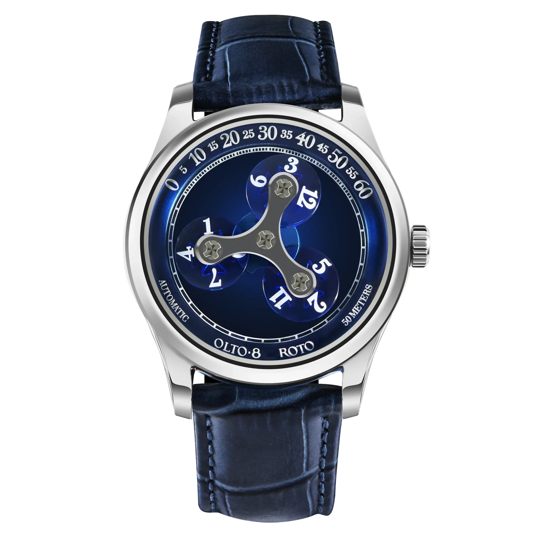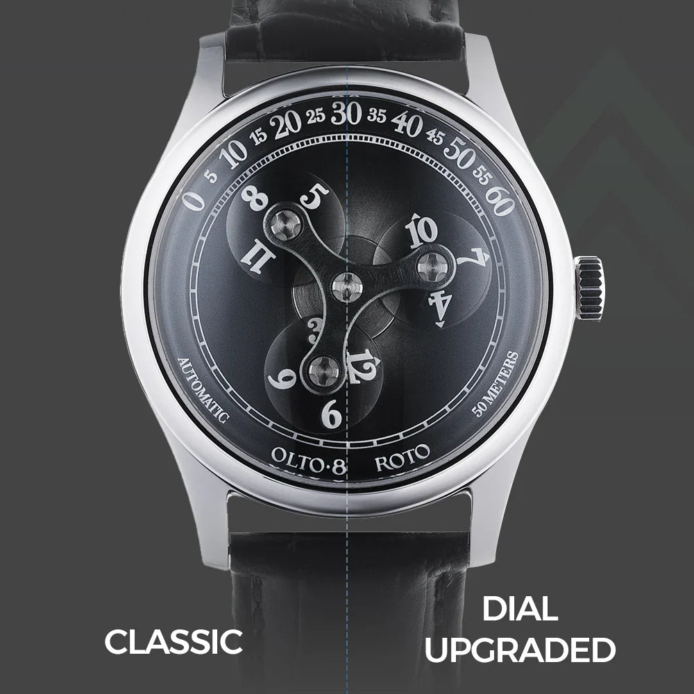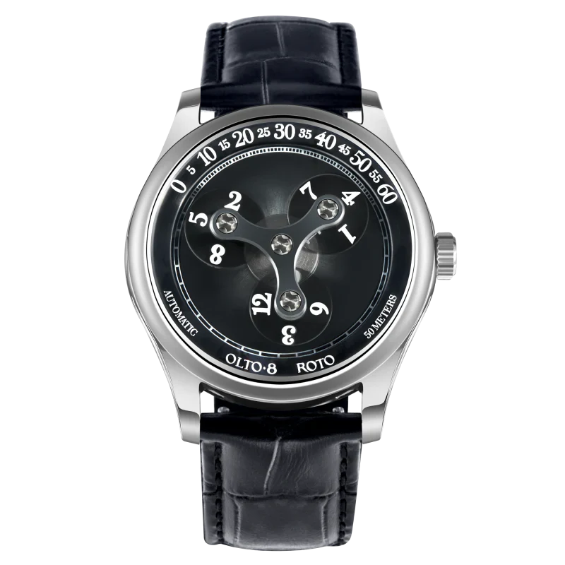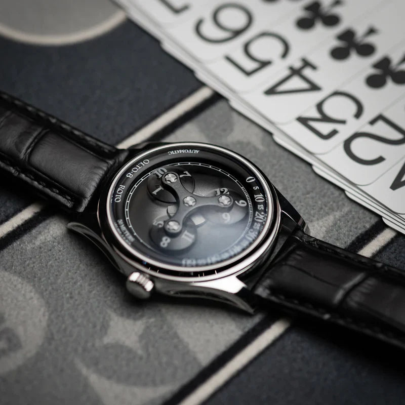 ROTO heeft een ronde kast van 38 mm, zorgvuldig vervaardigd uit hoogwaardig 316L roestvrij staal. Met een dikte van slechts 9 mm is ROTO 's werelds dunste horloge met een lopend uurwerk. Elk oppervlak van de kast is met de hand gepolijst in meer dan 10 processen, wat meer dan 120 minuten polijsttijd in beslag neemt, wat resulteert in een strakke en stralende afwerking.