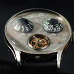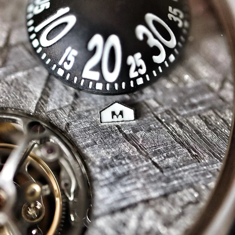 Nog unieker is dat het uurwerk een aangepaste, volledig geüpgradede Miyota 8215 is met nieuwe platen en een nieuwe rotor. Een intern ontwerp, verbeterd door de community. Het uurwerk is nu voorzien van tourbillon- en regulatormodules.