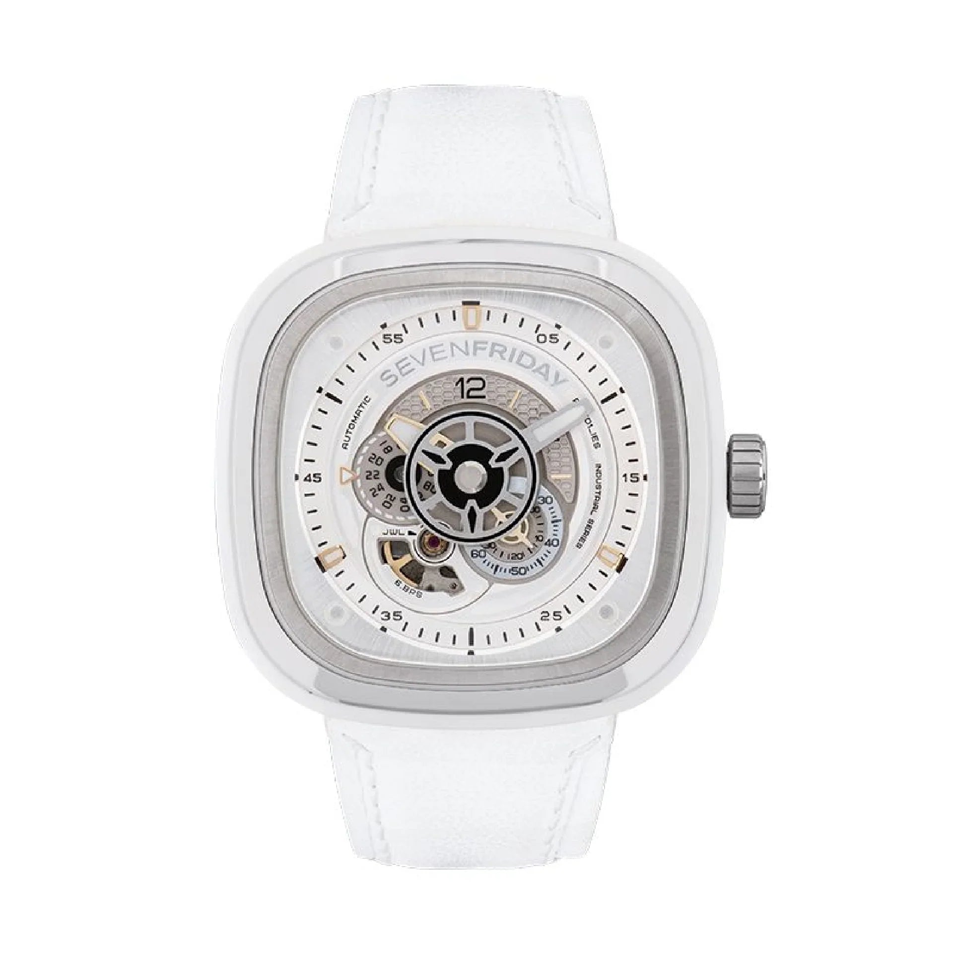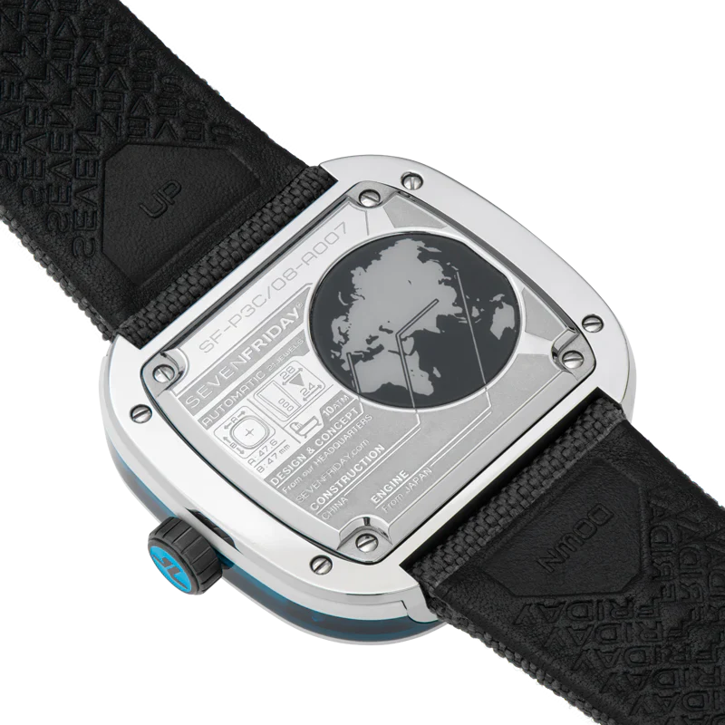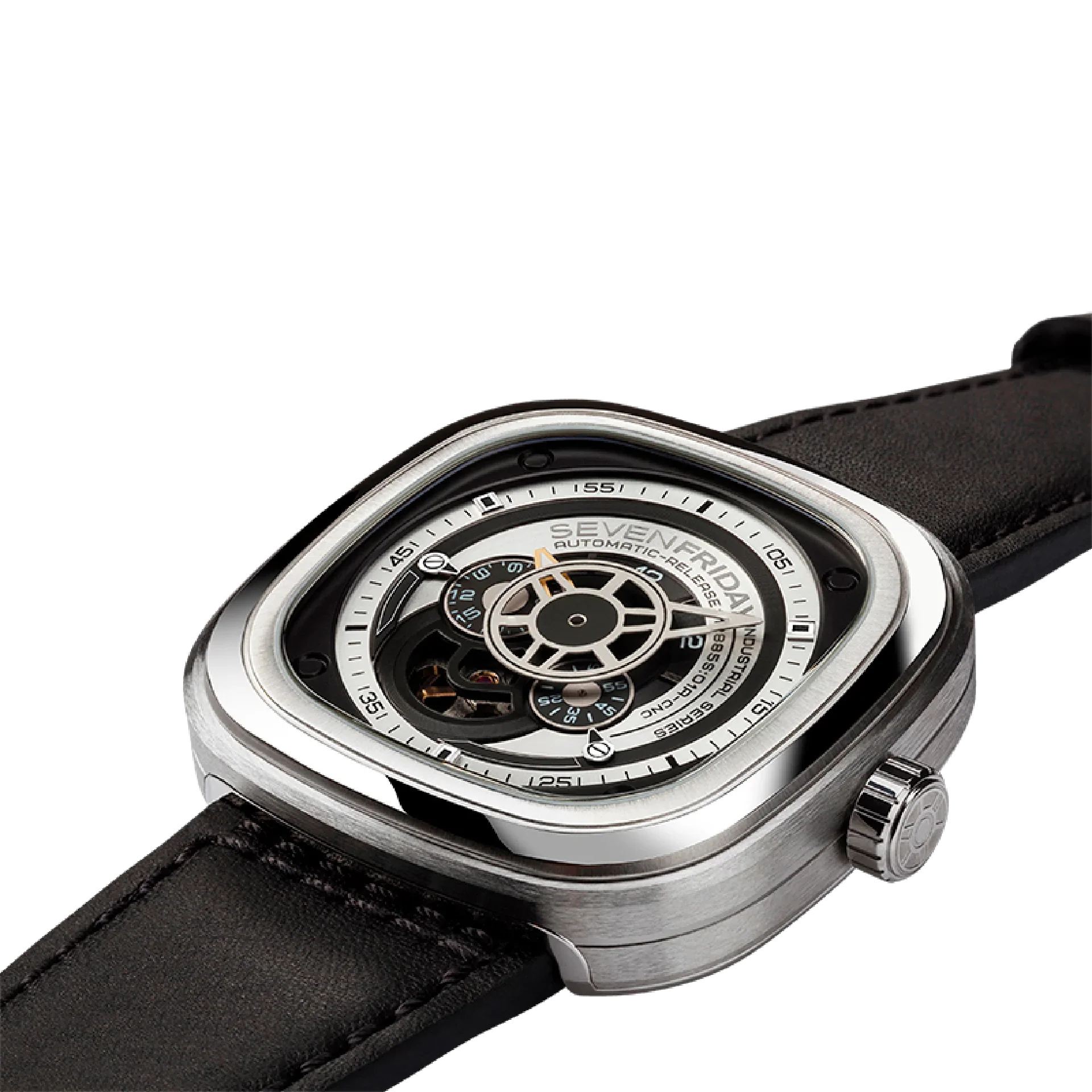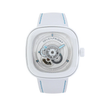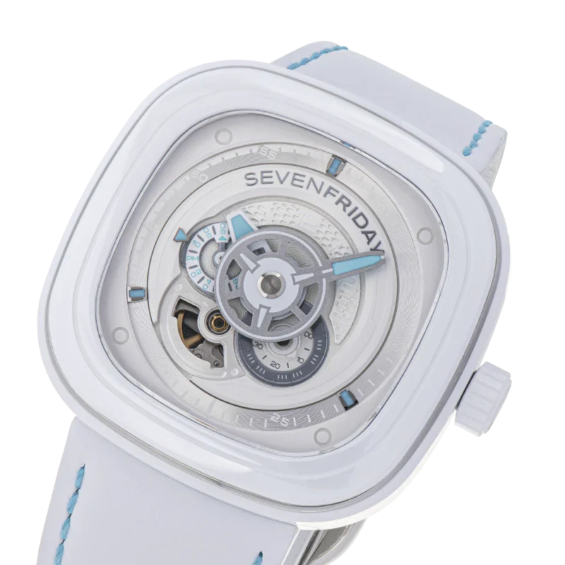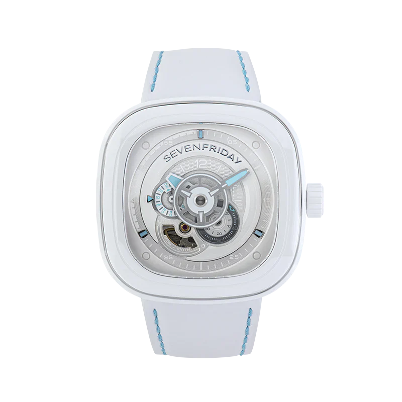 De inspiratie voor dit horloge, de Mexicaanse drank Curaçao, is duidelijk zichtbaar in de lichtgevende blauwe wijzers en wijzerplaat. Hoewel de cocktail misschien niet bij iedereen in de smaak valt, zal de P1C/05 een hit zijn. Dit contrast tussen het frisse wit en de levendige blauwtinten maakt dit horloge de perfecte zomerlook. Het enige wat je er misschien nog van weerhoudt om de Curaçao mee naar zee te nemen, is de gewatteerde witte band van echt kalfsleer met contrasterend blauw stiksel.