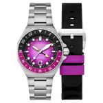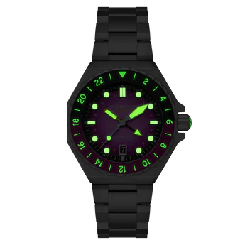 Met zijn opvallende paarse wijzerplaat is de Dumas GMT een ideaal horloge voor wie op zoek is naar stijl, functionaliteit en prestaties in elke situatie.