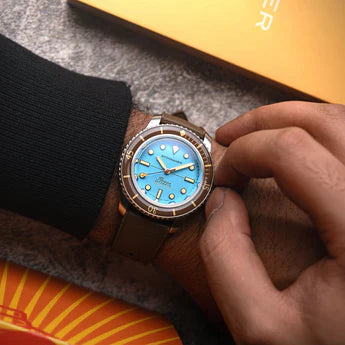Ter ere van het 145-jarig jubileum van Henry Fleuss' baanbrekende rebreathertest, markeert deze nieuwe versie van de Fleuss Automatic een belangrijke mijlpaal met zijn verfijnde kast van 40 mm. Met een vintage en ingetogen kleurenpalet brengt dit horloge een eerbetoon aan het erfgoed van duikhorlogeontwerp, met behoud van moderne esthetiek en hoge horlogenormen.