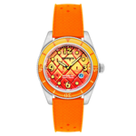 - Band : 22 mm oranje siliconen met gesp