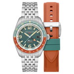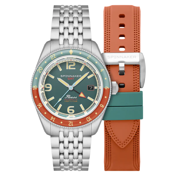 De Fleuss GMT Automatic draait niet alleen om strak design. Aangedreven door een Seiko NH34 automatisch uurwerk met GMT-functie , houdt het u altijd op tijd, ongeacht de tijdzone. De tweekleurige bezel voegt een levendige kleuraccent toe en maakt het ook gemakkelijk om meerdere tijdzones te volgen. Een extra rubberen band geeft u nog meer stijlmogelijkheden.