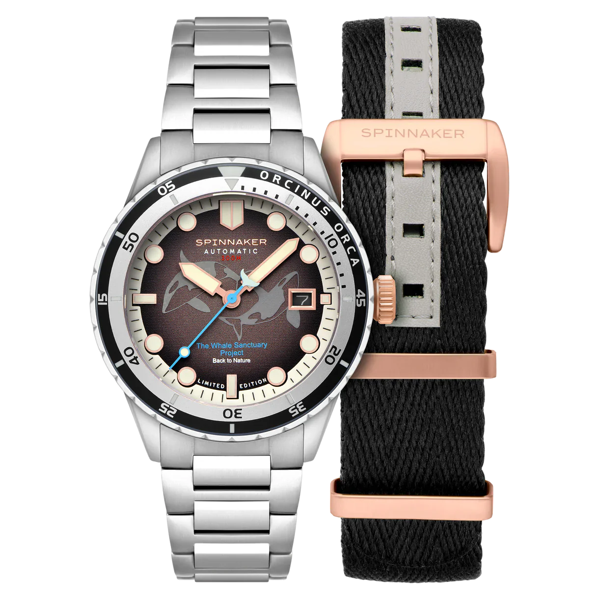 De Hass Automatic Whale Sanctuary Project Limited Edition , gelimiteerd tot 350 exemplaren , is een eerbetoon aan de majestueuze walvissen, deze iconische wezens van de oceanen. Dit model belichaamt Spinnakers filosofie: stijl, prestaties en diep respect voor het zeeleven combineren. Een uniek en milieuvriendelijk horloge.