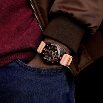 Een uniek eerbetoon aan de iconische personages van Bikinibroek , herzien door een moderne aanpak en tactisch design. Deze gelimiteerde editie biedt vier varianten geïnspireerd op SpongeBob, Patrick, Octo en Meneer Krabs . Elk model onderscheidt zich door een gedurfde esthetiek, een duurzame siliconen band en een bezeltypografie geïnspireerd op de iconische stijl van Bikinibroek.