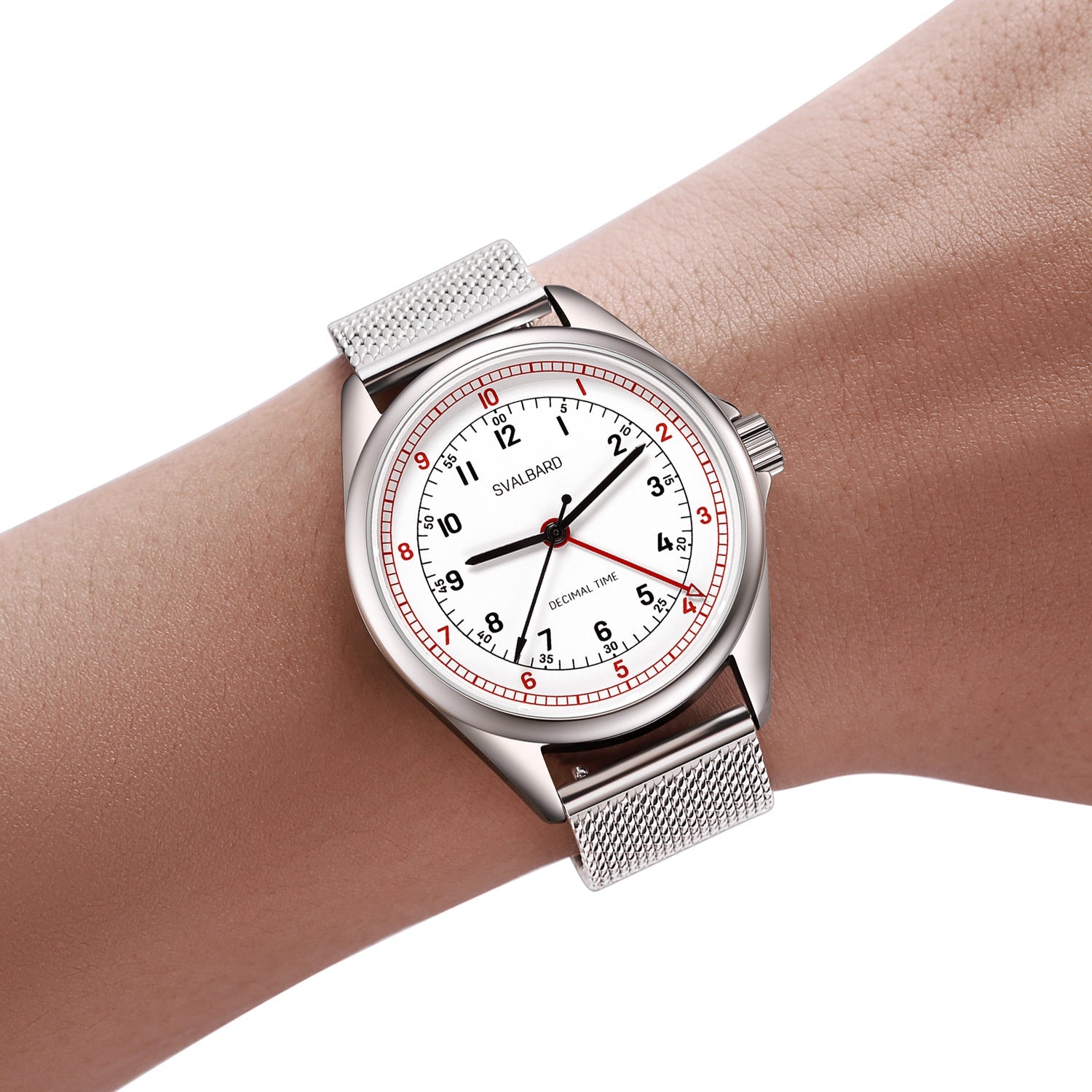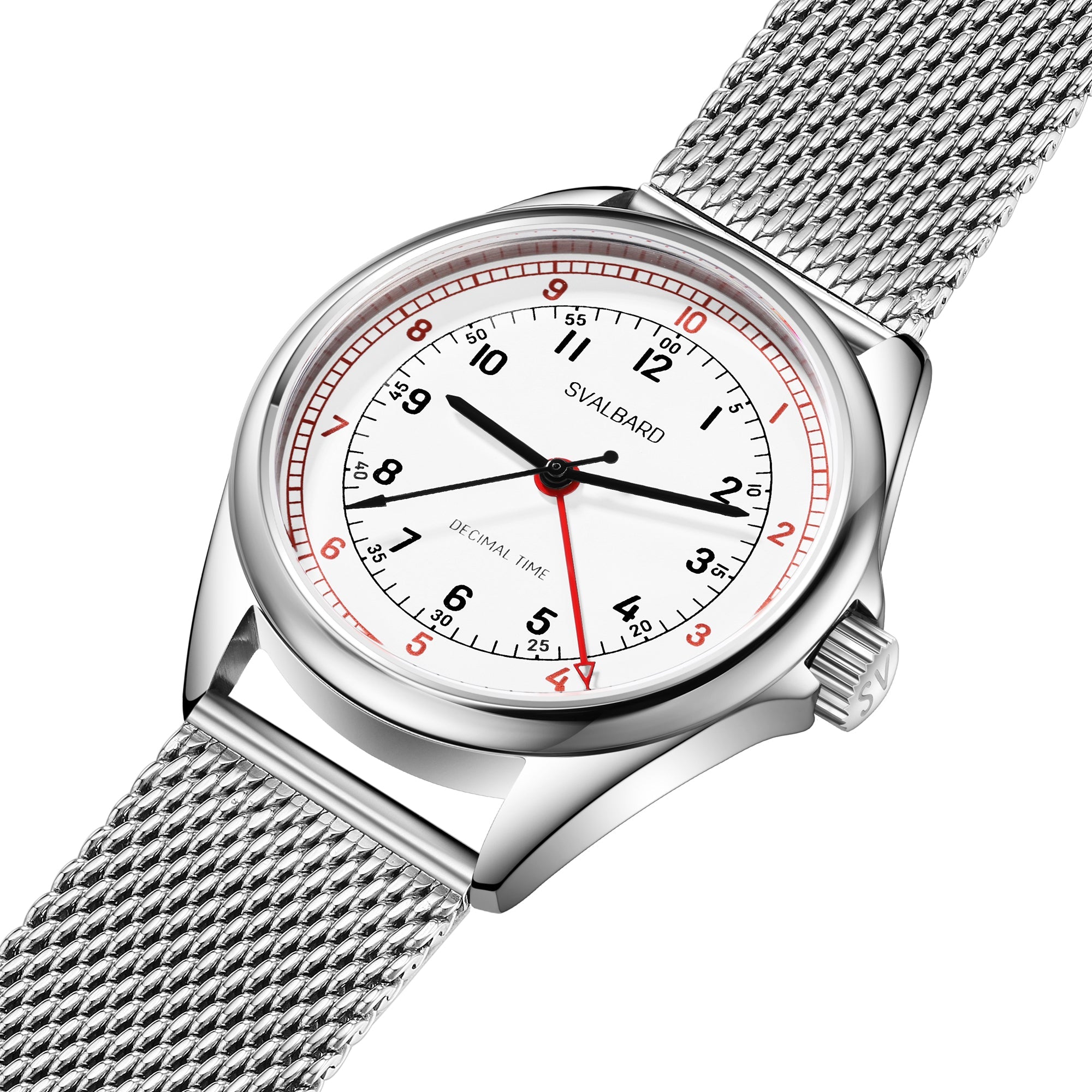 • Wijzerplaat : Wit met zwarte en rode cijfers en markeringen
