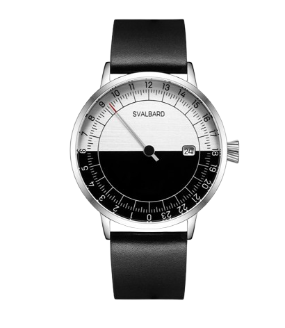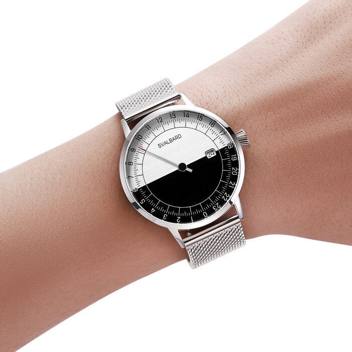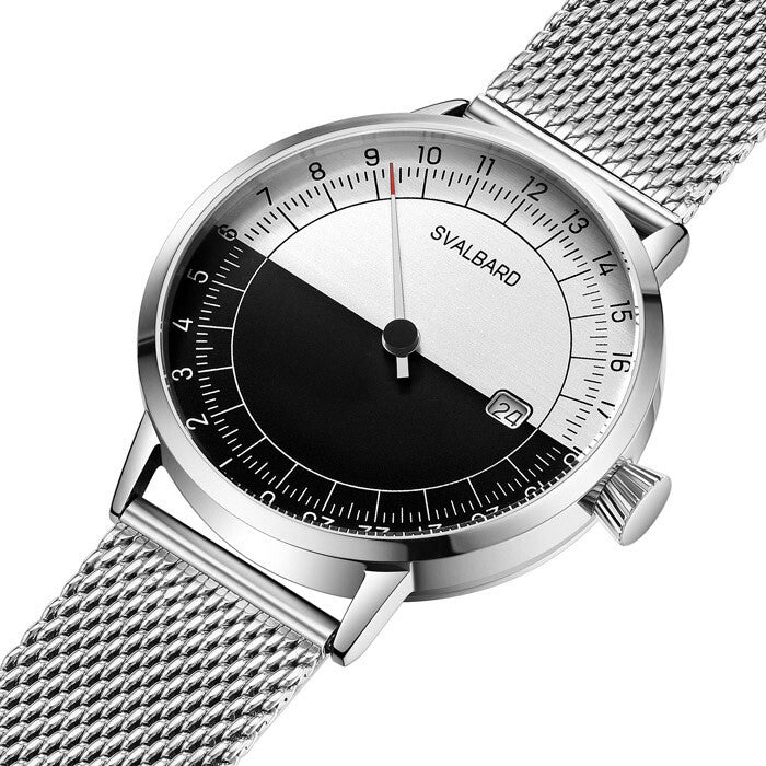 - Wijzerplaat : Zilver of zwart met contrasterende zwarte of zilveren markeringen.