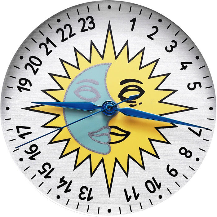- Wijzers : Geblauwde wijzers voor een vleugje kleur en betere leesbaarheid.