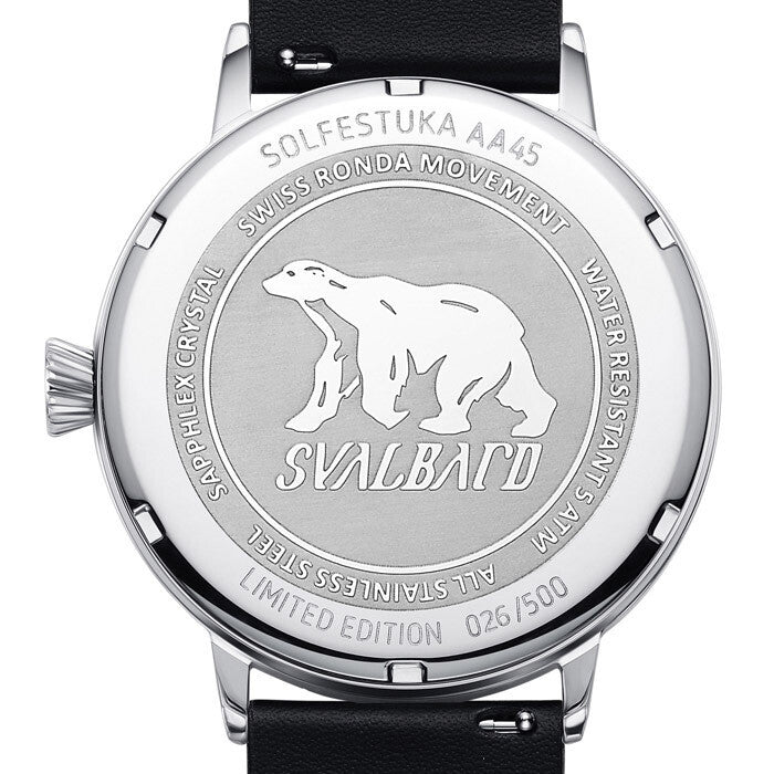 De Solfestuka AA45 is een uniek horloge, geïnspireerd op de terugkeer van de zon naar Longyearbyen na de poolnacht, gevierd tijdens het Solfestuka-festival. Dit model met één wijzer legt de essentie van het verstrijken van de tijd in het poolgebied vast en combineert elegant en functioneel design met een fascinerend verhaal. Dit 24-uurs horloge met een rode wijzerplaat biedt een innovatieve en artistieke manier om de tijd af te lezen.