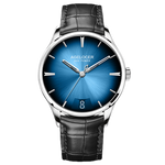 Decoratie van het uurwerk: Het rhodium-geplateerde uurwerk is behandeld met hoogwaardige horlogetechnieken, met gepolijste randafwerkingen en geborstelde oppervlakken, fijne Côtes de Genève-versiering en zonnestralenpatronen, gouden gegraveerde letters, blauwe schroeven en spiegelgepolijste schroefkoppen.