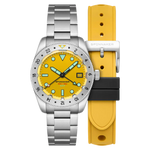 • Wijzerplaat: Geel met aangebrachte indexen en Swiss Super Luminova