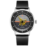 • Keuze uit band : Gewatteerde zwarte of bruine leren of stalen mesh band