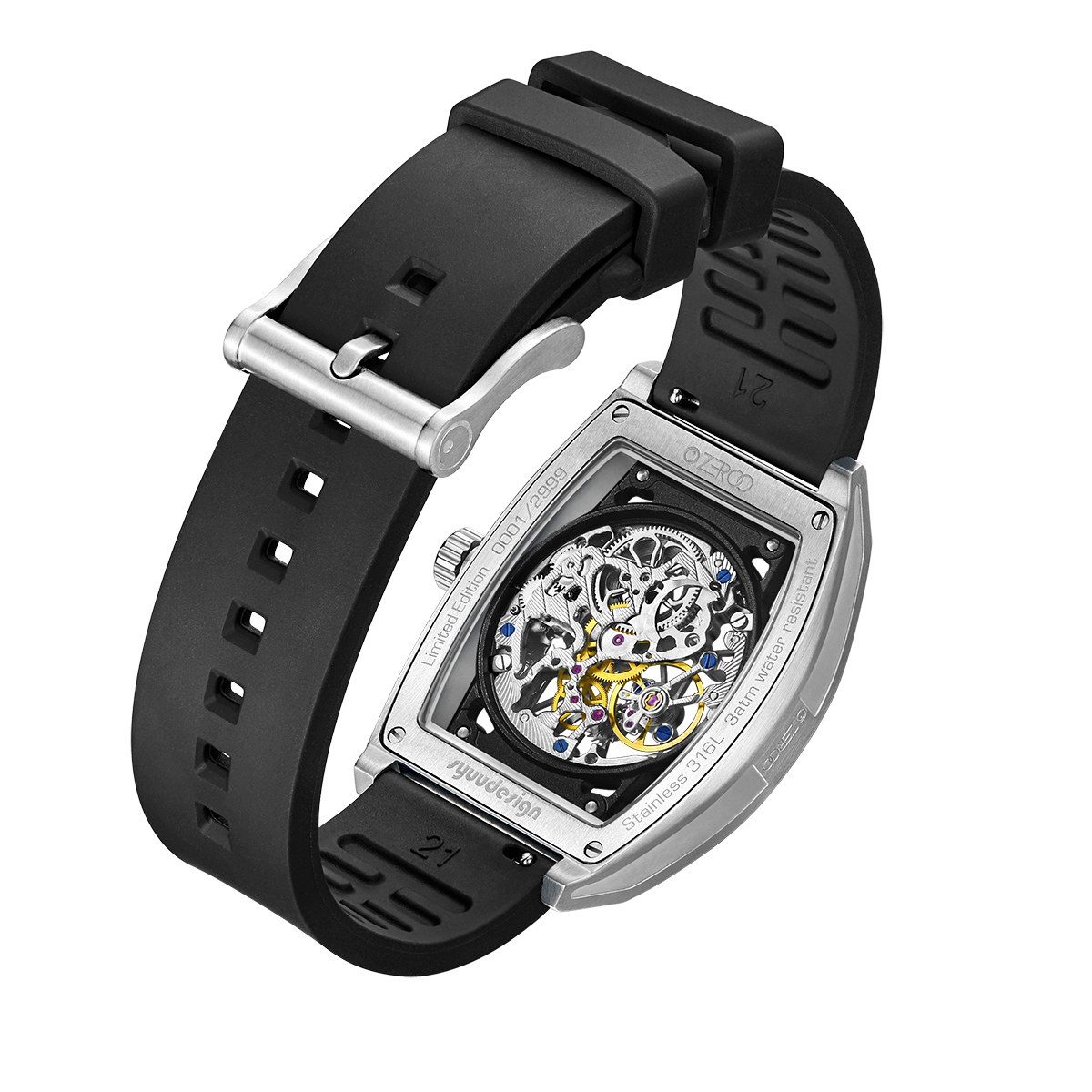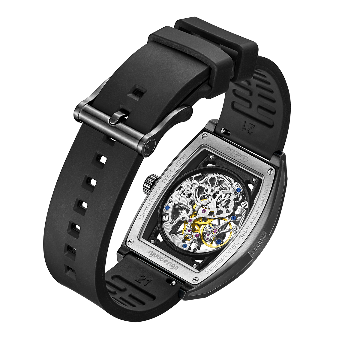 Aantal geproduceerde horloges: beperkt tot 2999 stuks van elke kleur, gegraveerd met het serienummer