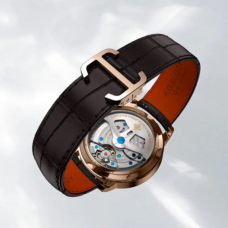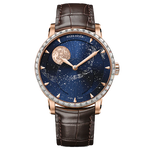 Ontdek het Agelocer Astronomer Moon Phase horloge, een meesterwerk van techniek dat precisie en elegantie combineert. Dit unieke horloge geeft de maancyclus met opmerkelijke nauwkeurigheid weer en is tegelijkertijd een eerbetoon aan de ruimtevaart. De wijzerplaat is ontworpen om de schoonheid van de nachtelijke hemel op te roepen, met minutieuze details die het oog betoveren. Uitgerust met een hoogwaardig automatisch uurwerk is dit horloge niet alleen nauwkeurig, maar ook duurzaam. Het voortreffelijke vakmanschap en de hoogwaardige materialen maken het een verzamelobject, ideaal voor astronomieliefhebbers en liefhebbers van luxe horloges.