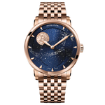 Ontdek het Agelocer Astronomer Moon Phase horloge, een meesterwerk van techniek dat precisie en elegantie combineert. Dit unieke horloge geeft de maancyclus met opmerkelijke nauwkeurigheid weer en is tegelijkertijd een eerbetoon aan de ruimtevaart. De wijzerplaat is ontworpen om de schoonheid van de nachtelijke hemel op te roepen, met minutieuze details die het oog betoveren. Uitgerust met een hoogwaardig automatisch uurwerk is dit horloge niet alleen nauwkeurig, maar ook duurzaam. Het voortreffelijke vakmanschap en de hoogwaardige materialen maken het een verzamelobject, ideaal voor astronomieliefhebbers en liefhebbers van luxe horloges.