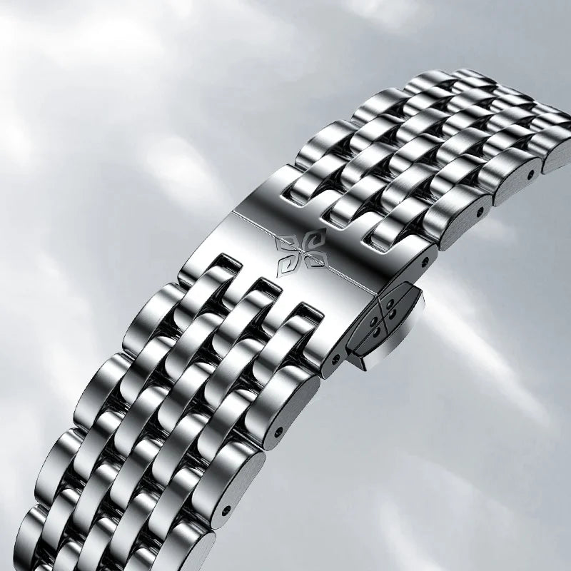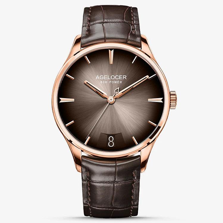 AGELOCER laat zich voor het ontwerp van zijn horloges inspireren door moderne architectuur en creëert zo een zwevend kasteel tussen onze polsen. De traditionele wijzerplaat is verwijderd, zodat de drager het spel van licht en schaduw van het uitgeholde skelet van het uurwerk duidelijk kan zien, wat een unieke architectonische esthetiek tot uitdrukking brengt.