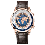 Functies: centrale uur-, minuten- en secondewijzer, wereldtijd, grote vensterkalender