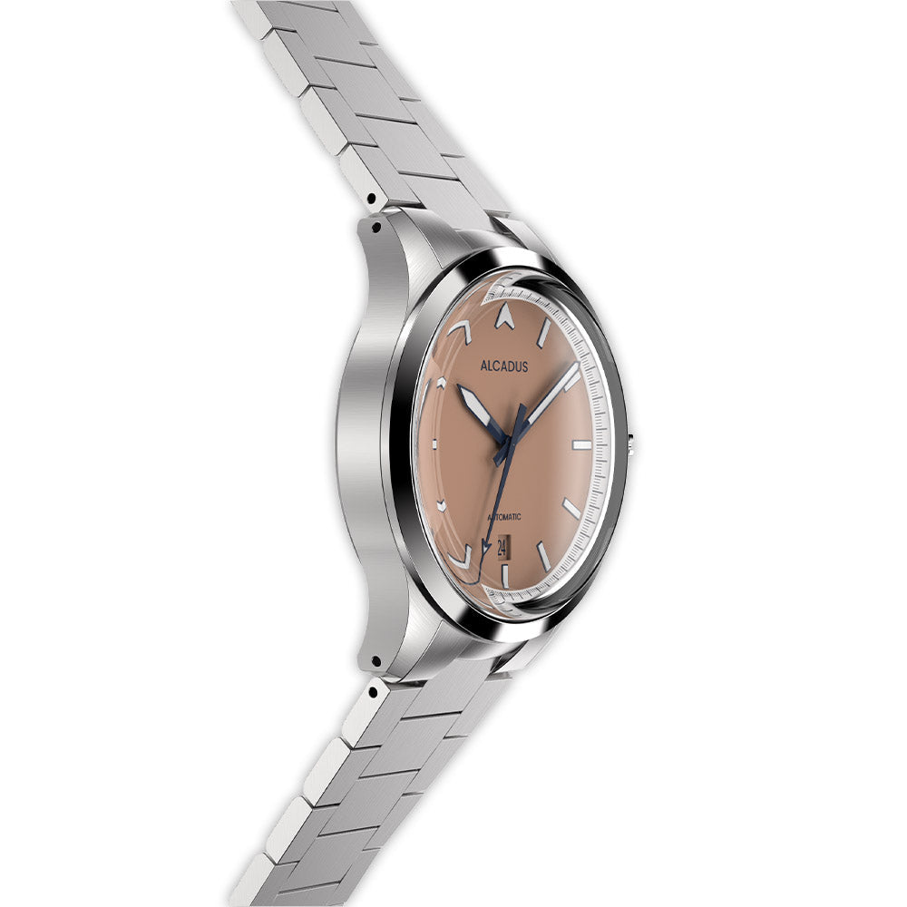 Kleurgecoördineerd datumvenster op 6 uur voor een symmetrisch en tijdloos design.