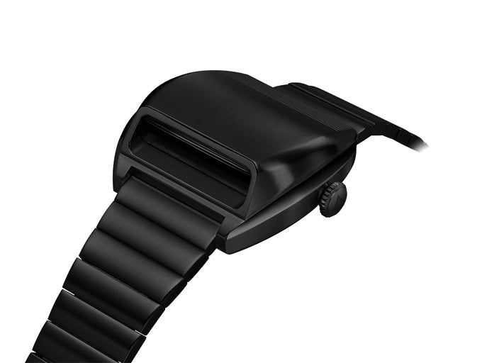 Een bijpassende massieve roestvrijstalen schakelband is verkrijgbaar voor een meerprijs van € 35.