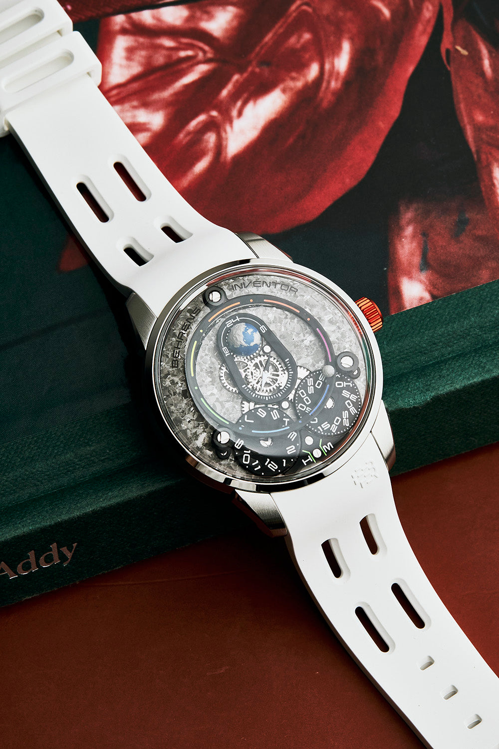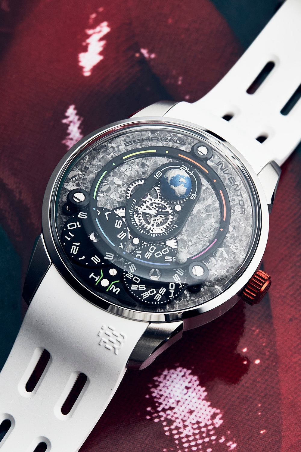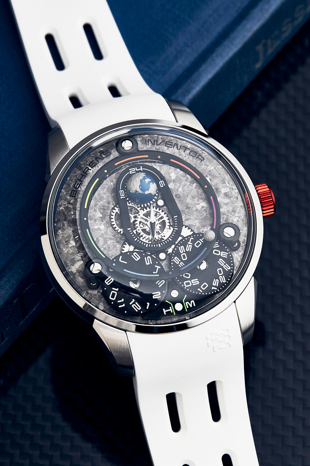Het horloge is uitgerust met een automatisch uurwerk van Zwitserse makelij, ETA Cal.2824, met een tijdweergave die is geïnspireerd op de baan tussen de aarde en de maan. Om 12:00 uur draait een wereldbol, die de aarde voorstelt, elke 24 uur om de dag-nachtcyclus aan te geven, terwijl de maan in een cyclus van 28 dagen om de aarde draait, wat een fascinerend en realistisch 3D-beeld van de ruimte oplevert.